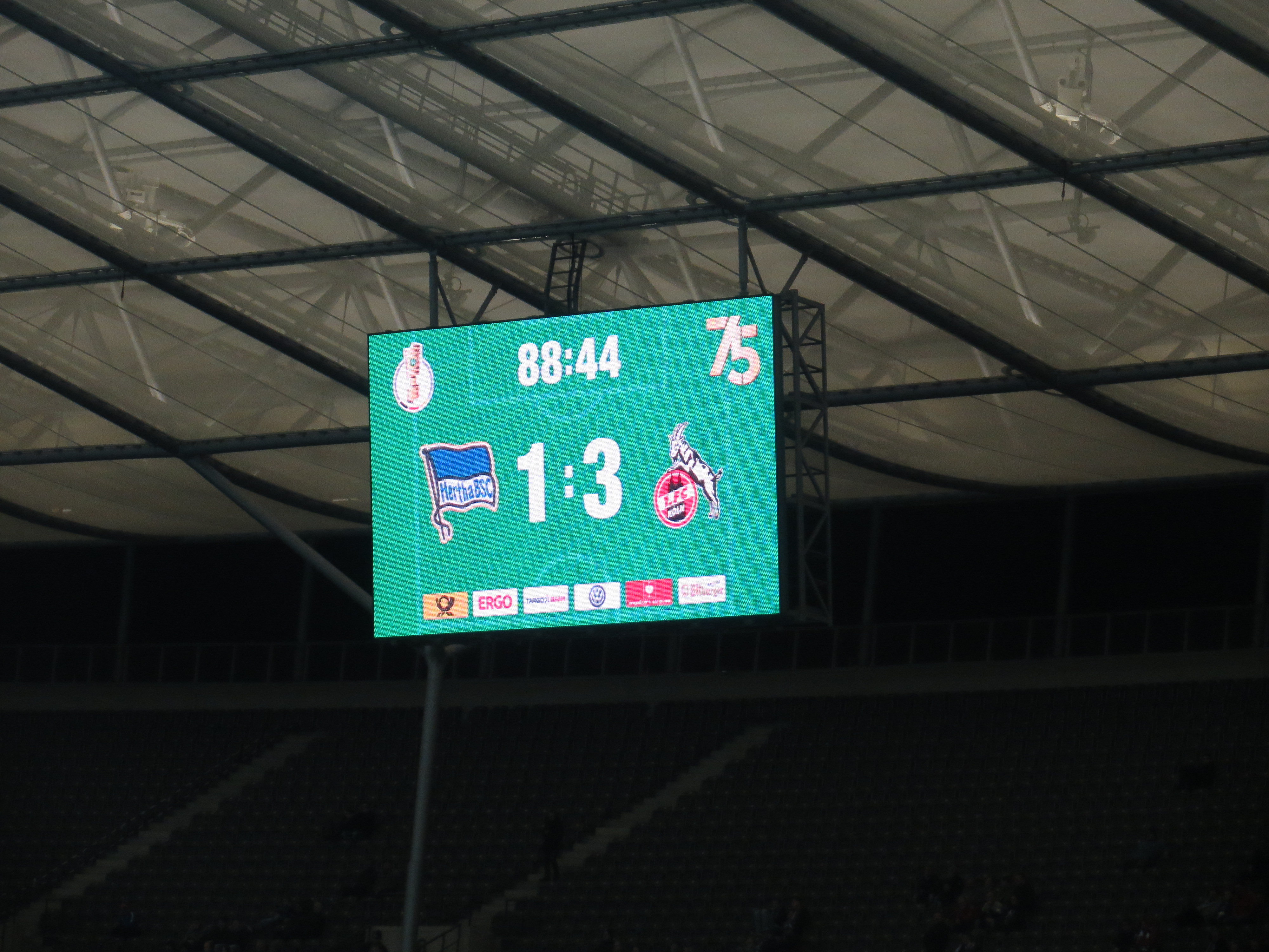 Die Mannschaft erwischte heute eigentlich erst einmal einen guten Start in die Partie. In der ersten halben Stunde wurde Köln in die eigene Hälfte gedrängt. Aber diese Flitzpiepen vergessen einfach auf das Tor zu schießen. In besten Schusspositionen wurde der Ball immer noch einmal quergelegt, bis der Assistent endlich Erbarmen hatte und seine Fahne hob. Hertha unter Dardai steht für das Gegenteil von Torgefahr. In der 35. Minute stand es durch eine Slapstick Aktion plötzlich 0:1 für Köln. Das brach unserer Trümmertruppe völlig das Genick und jeder Versuch zu kämpfen oder zu spielen wurde eingestellt. So stand es plötzlich noch vor der Halbzeit 0:2. Spätestens beim 0:3 nach der Pause war hier alles durch, daran konnte auch der Anschlusstreffer von Stark nichts ändern. Ein Aufbäumen gegen wirklich schwache Köllner war zu keiner Zeit zu erkennen.