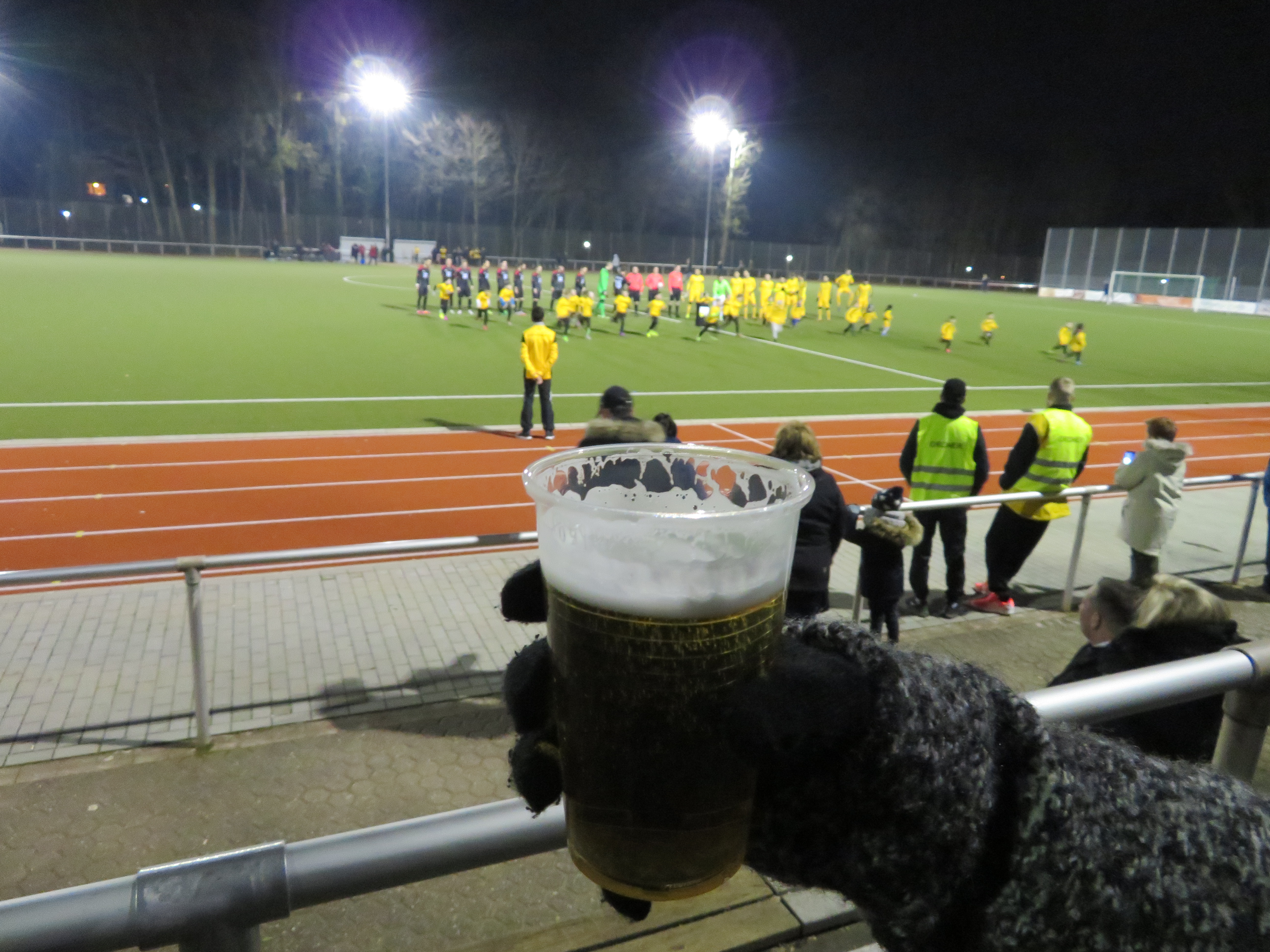 Wir stärkten uns noch mit einem Radler und positionierten uns dann auf einer der Stufen auf Höhe der Mittellinie. Das Spiel wurde übrigens vom Onlineportal fupa.net übertragen. So verrückt ist die Welt mittlerweile. Ebenjenes Feature ermöglicht allen Interessierten, sich die Highlights dieses irren Spiels noch einmal vor dem Rechner zu Gemüte zu führen.
