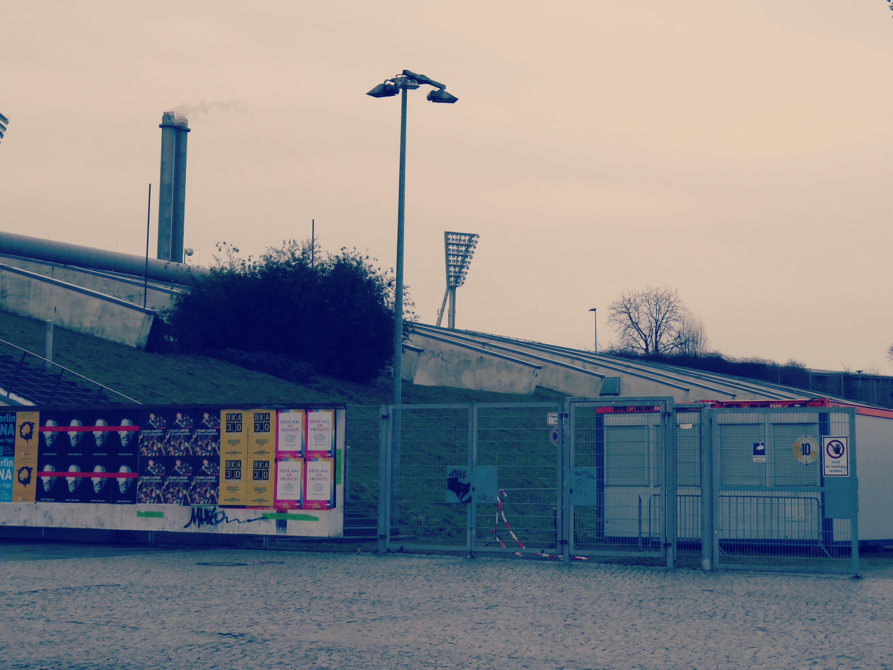 Vom Gesundbrunnen lief ich zu Fuß durch den Nieselregen und spätestens als ich den Mauerpark durchquerte, kam doch ein leichtes Kribbeln auf. Für faire 8 Euro erhielt ich meine Zugangsberechtigung und war wenige Minuten später auf der Haupttribüne angelangt. Sage und schreibe 114 Menschen hatten sich am Ostersamstag aufgemacht, um diesem Spiel beizuwohnen. Das hatte bei diesem großen Stadion dann schon seinen gewissen Reiz. Für meinen Geisteszustand spricht dieser Satz sicherlich nicht, aber da ist Hopfen und Malz sowieso schon lange verloren.