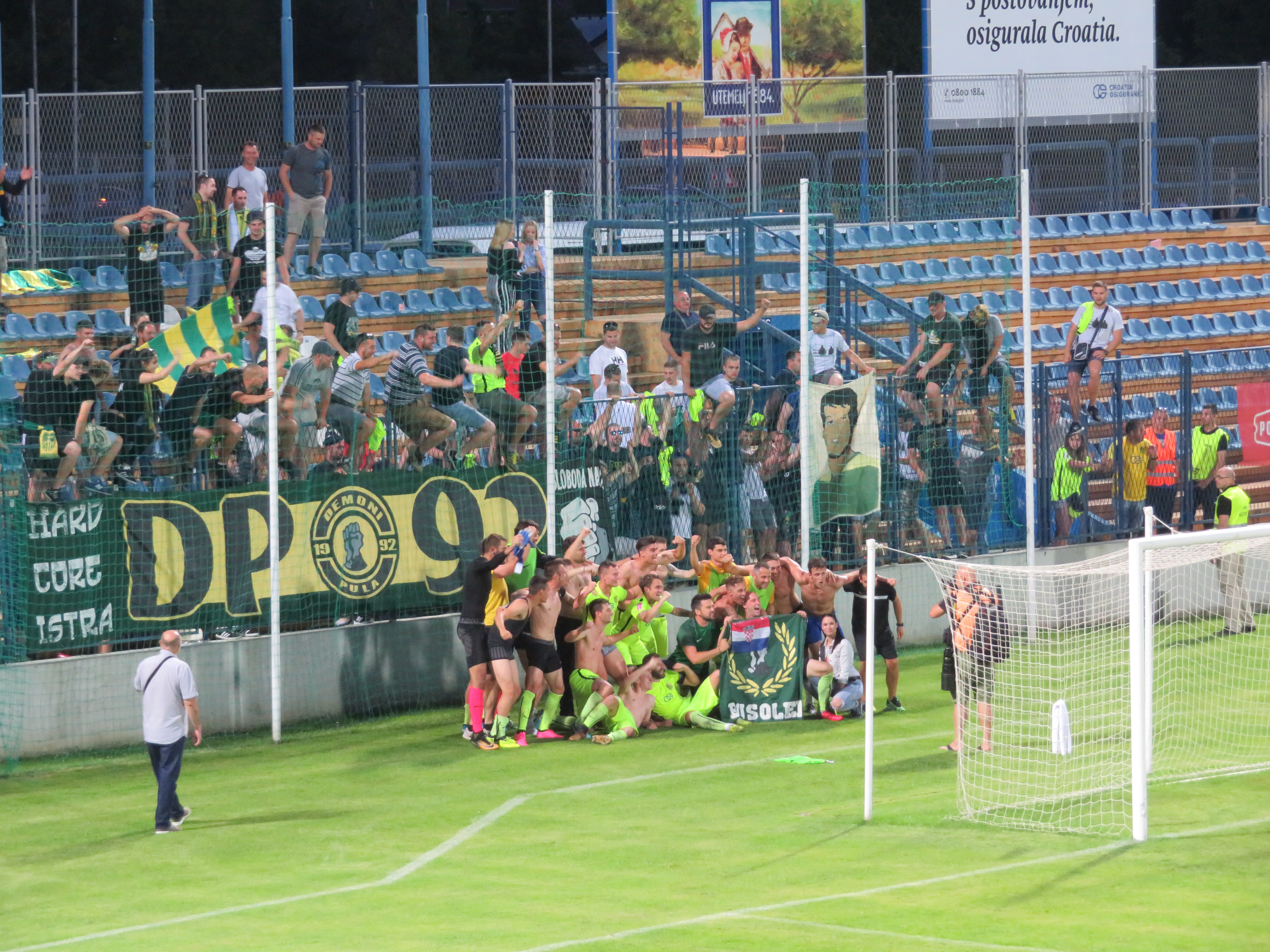Das Spiel war in der ersten Halbzeit sehr mau. NK Istra, der Vorletzte der ersten kroatischen Liga hatte das Hinspiel mit 3:1 gewonnen und stellte sich somit hinten rein. Varaždin machte das Spiel ohne gefährlich zu werden. In der zweiten Halbzeit machte Varaždin dann immer mehr das Spiel und konnte in der 55. Minute die Führung erzielen. Jetzt sah es kurz so aus, als würde die Partie kippen. Varaždin machte immer mehr Druck und konnte etliche Chancen herausspielen und auch das Publikum war endlich da. Trotz einer 30-minütigen Überzahl, rollte der Ball jedoch einfach nicht ins Tor und so konnte NK Istra den Klassenerhalt feiern. Bei der Feierei mit den Fans entkleideten sich die Spieler bis auf die Unterhose und verschenkten die Kleidungsstücke an die Fans. Sehr schön zu sehen. Ein toller Spielbesuch und ein Check für den Länderpunkt Kroatien.
