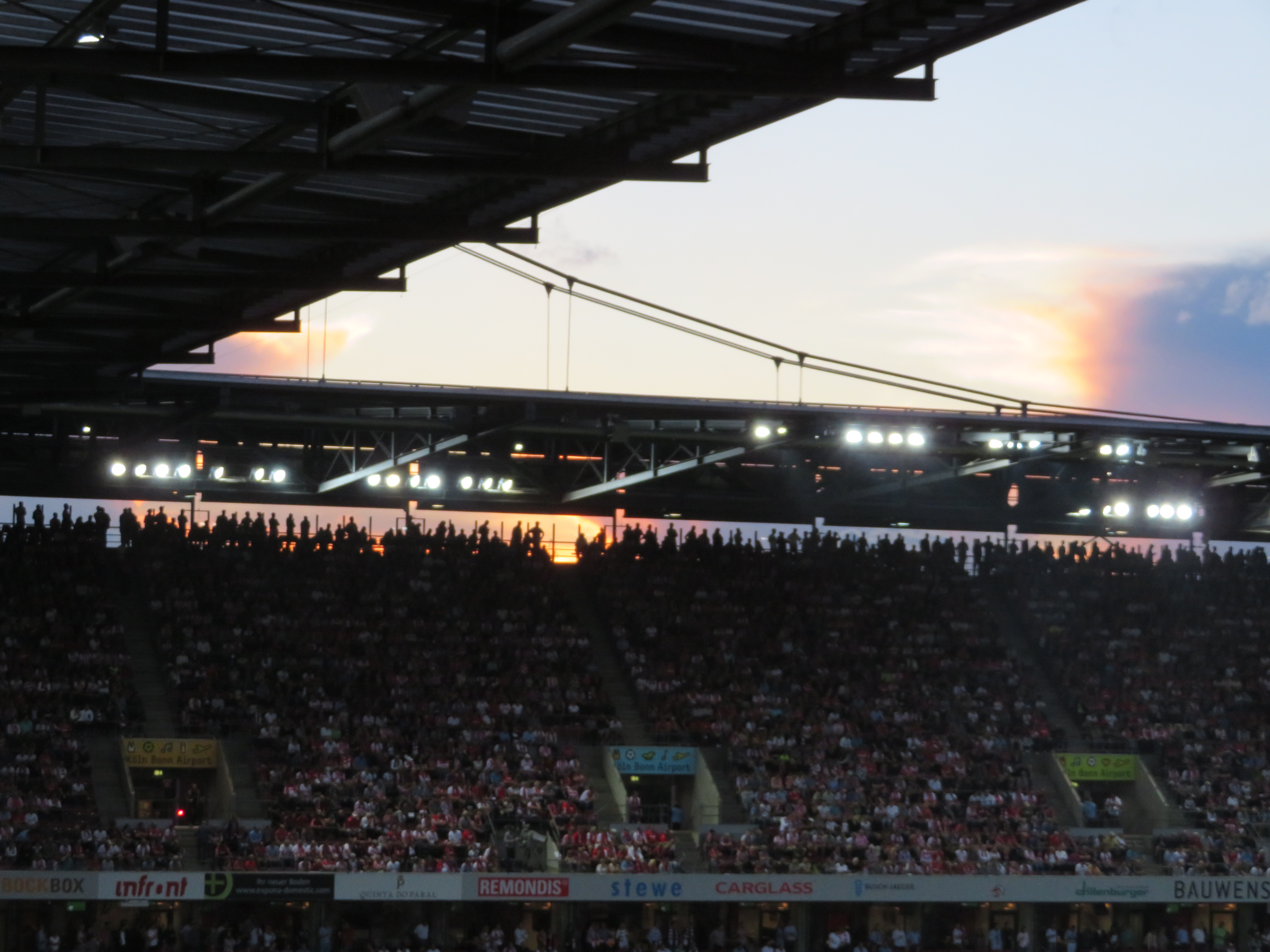 Auch der Montag bot eine Reise in die groundhopperischen Amivalenzen, denn es sollte wieder zum Fußball gehen. Die DFL hatte sich nicht lumpen lassen und auf diesen Montagabend das Spiel zwischen Köln und Union Berlin gelegt. Also eine Anreise von 550 Kilometern pro Strecke. Wahnsinn! Nach der Arbeit ging es mit dem Zug in Richtung Köln Süd. Um die notorisch schreckliche Straßenbahnreise in Köln zu vermeiden, entschieden wir uns die fünf Kilometer bis zum Stadion heute zu Fuß zurückzulegen. Da das Wetter sich etwas stabilisiert hatte, machte das auch durchaus Spaß.