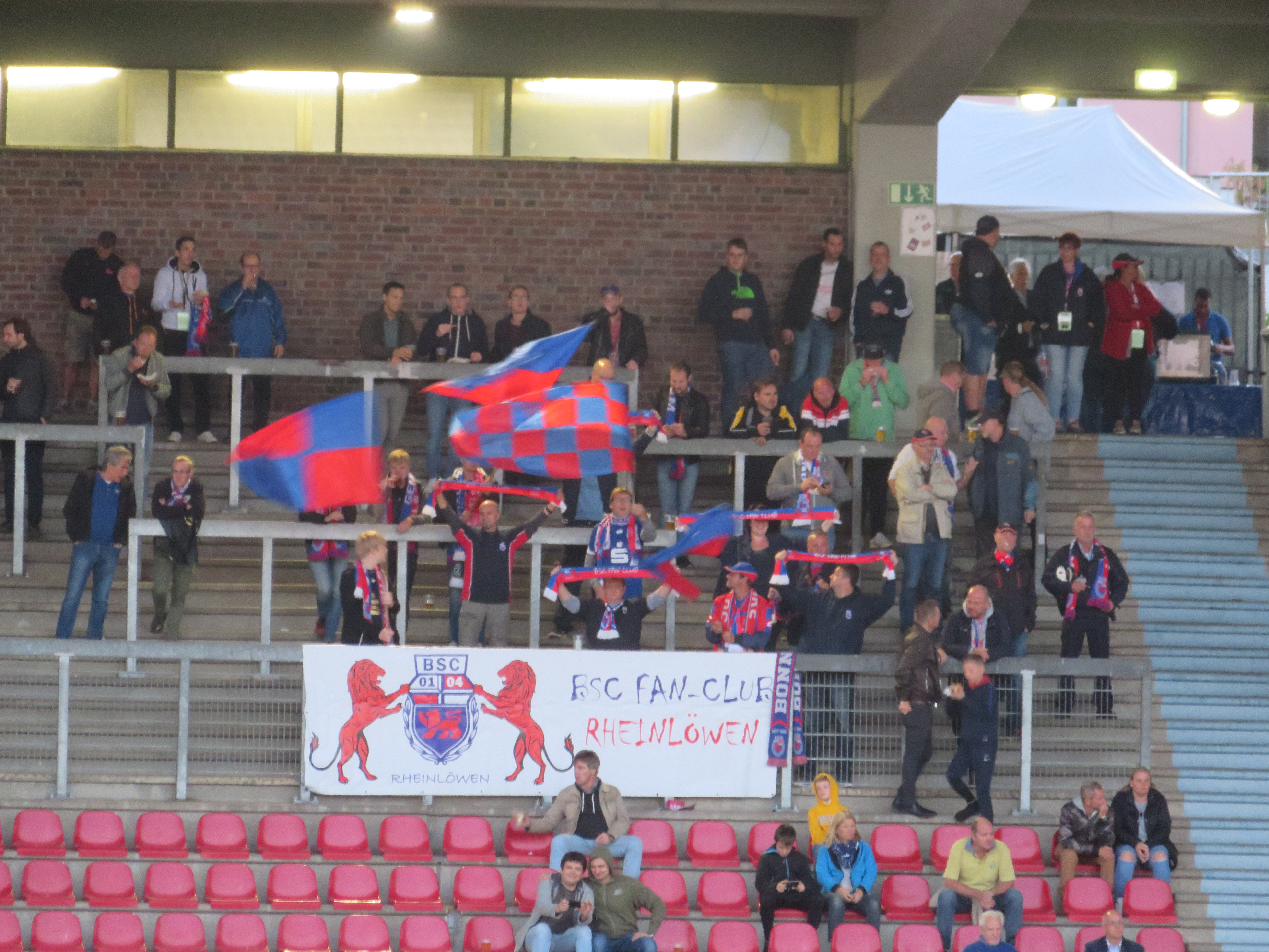 An diesem Freitag wurden die eigenen Grundsätze mal wieder schleunigst über Bord geschmissen. Eigentlich wollte ich ja nicht mehr zum Bonner SC bei unattraktiven Gegnern und eigentlich wollte ich bei schlechtem Wetter nicht mehr um jeden Preis ins Stadion gehen. Uneigentlich stand ich dann jedoch am Freitag auf der Gegentribüne des Sportpark Nords und fror wie ein Hund, und dass Mitte September. Dabei hätte man die Zeichen bereits am Tag deuten können. Der Temperaturabsturz war wirklich gewaltig und dazu gab es unangenehmen Regen und heftige Windböen. Am Abend ließ ich mich jedoch von einem Hoffnungsschimmer in Form von einigen Sonnenstrahlen aus dem Wohnzimmer locken und so stand ich also bei diesem Regionalligaschlager auf der Traverse.