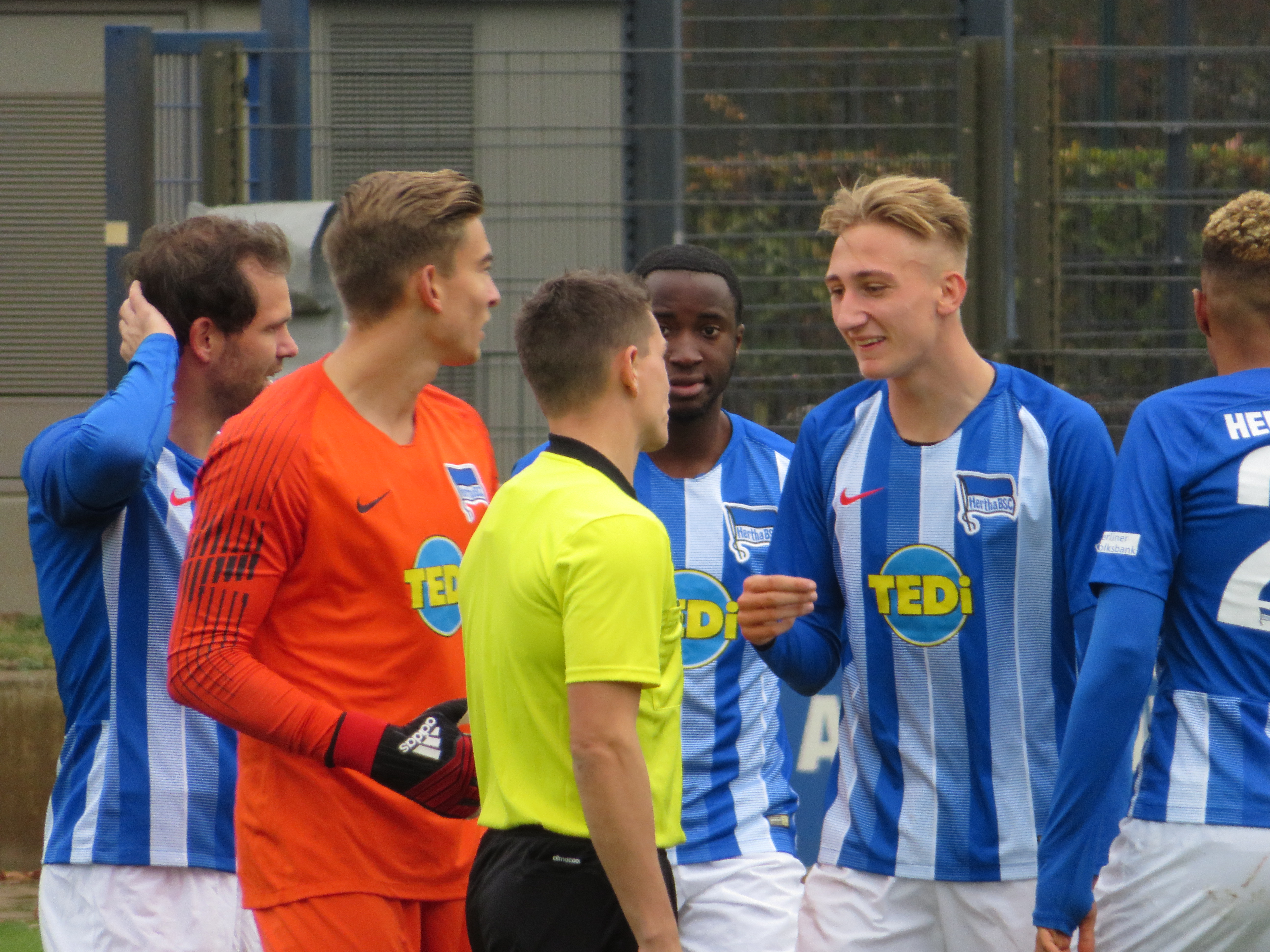 Auf dem Rasen wurde jedoch einiges geboten. Hertha II startete sehr druckvoll in die Partie und hatte etliche gute Chancen. Unterstützt von den „Profis“ Klünter und Köpke, sah das wirklich gut aus. Ein sehr zweifelhafter Platzverweis, warf Hertha dann zurück und man stand in der Folge etwas tiefer. Der unsichere Schiri gab jedoch kurz vor der Pause auch einem Chemnitzer einen fragwürdigen Platzverweis, sodass wieder Egalität auf dem Platz herrschte. Als im Anschluss auch noch das 1:0 für Hertha fiel, brandete Jubel auf. In der zweiten Halbzeit, zeigte sich dann jedoch warum Chemnitz eine Spitzenmannschaft ist. Die wenigen Chancen wurden eiskalt genutzt und das Spiel mit 1:3 komplett gedreht. Hertha spielte weiter munter nach vorne, aber es war wie verhext und so blieb es bei diesem frustrierenden Ergebnis. Weiterspielen, Jungs!