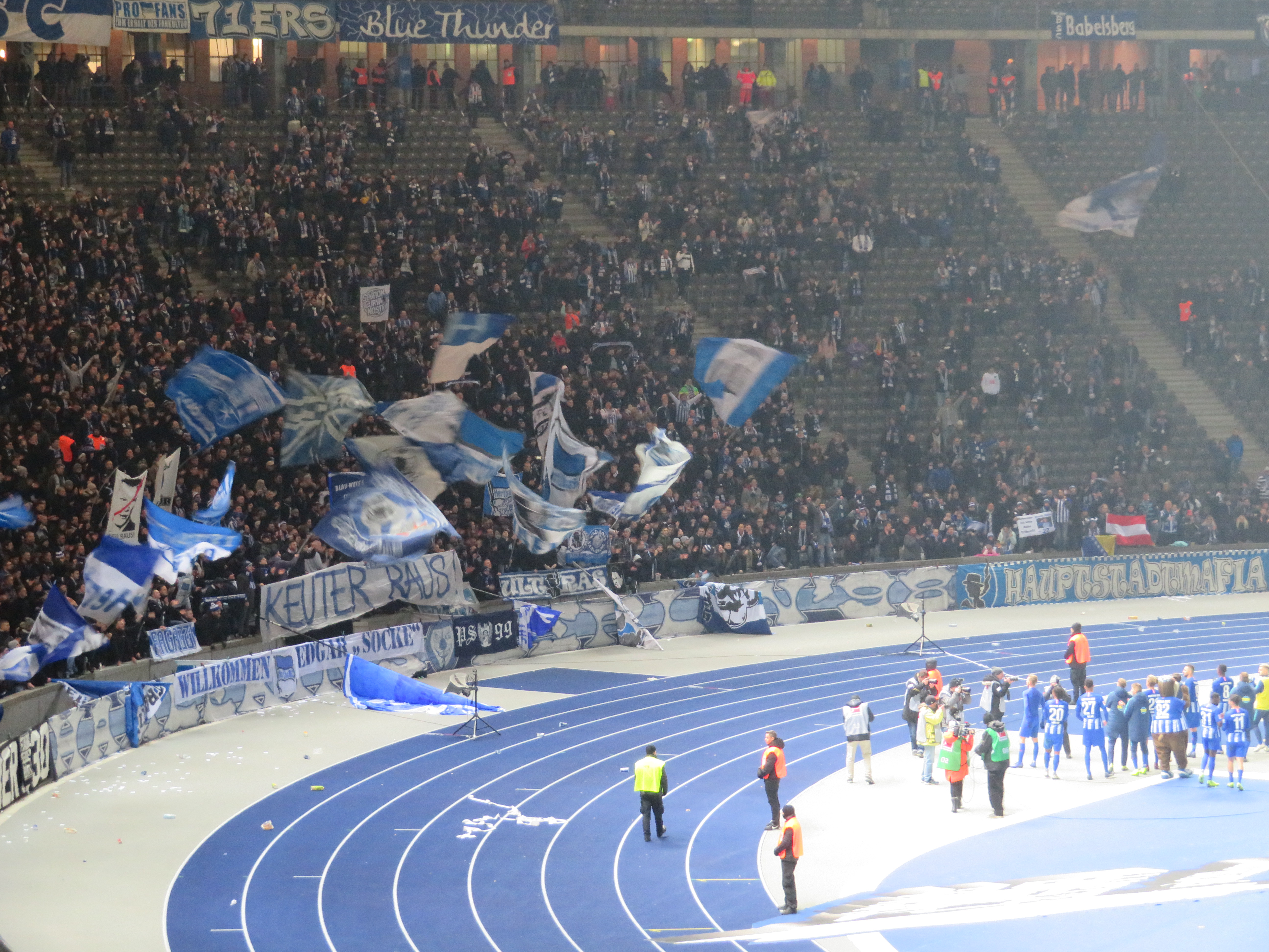 Selbiges kann man über die Partie sagen. Es fing richtig bitter an und durch böse individuelle Fehler stand es nach zehn Minuten bereits 0:2. Die Mannschaft tat es uns jedoch gleich und gab nicht auf und so konnte wenige Minuten später auf 1:2 verkürzt werden. Auch in der Folge, war man die bessere Mannschaft, brachte den Ball jedoch nicht über die Linie. Unvermögen paarte sich dabei mit dem guten Hoffenheimer Keaper. Mit dem 1:3 nach der Halbzeitpause, schien dann endgültig alles verloren, aber die Herthaner steckten weiter nicht auf. Leckie verkürzte und kurz vor Schluss traf Lazaro durch einen wunderbaren Distanzschuss zum 3:3 Endstand. Ein fantastisches Spiel, das die Berliner Morgenpost treffend zusammenfasste: „3:3 gewonnen“.