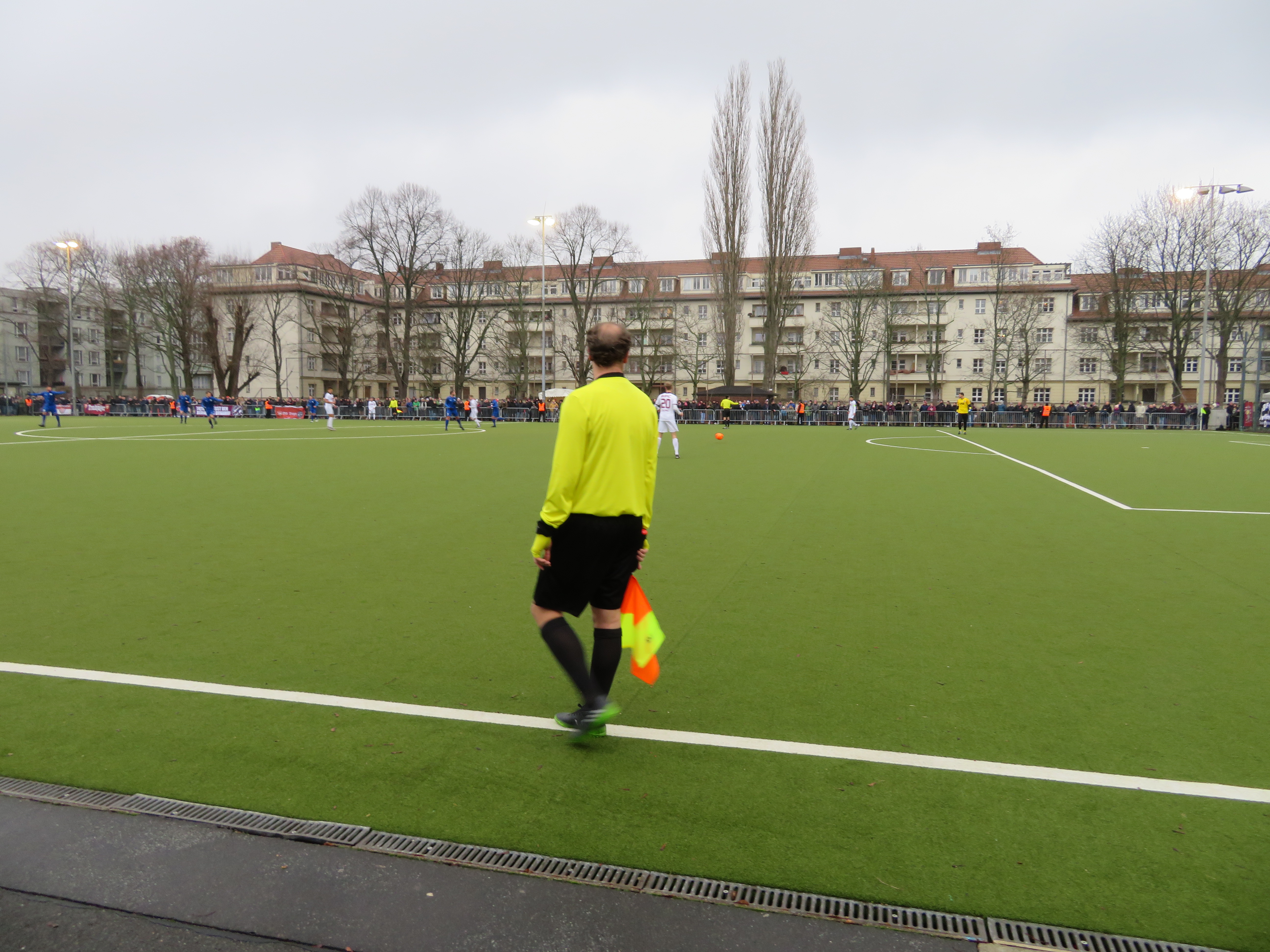 Sonntag ist traditionell dem Amateurfußball gewidmet. Aber gilt das auch bei Minusgraden und diesigem Wetter im Februar? Eigentlich hatte ich mich für ein klares Nein entschieden. Zu dieser Jahreszeit gibt es sowieso vorwiegend Testspiele, die mich nicht wirklich interessieren. Plötzlich stellte ich jedoch fest, dass die Viertelfinale im Berlinpokal am Sonntag ausgetragen würden. Zudem gab es mit Blau-Weiß 90 gegen den BFC ein interessantes Spiel auf dem Zettel. Ein bisschen frische Luft ist ja auch nicht schlecht und schon saßen wir in der U-Bahn und dann im Bus Richtung Berliner Süden.