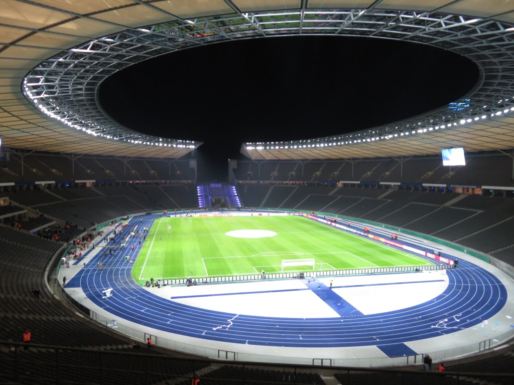 Endlich mal wieder ein großes Spiel im Berliner Olympiastadion. Eigentlich handelte es sich um das vorweggenommene Finale und so war es sehr ärgerlich, dass die Losfee uns dieses Duell bereits im Achtelfinale bescherte. Für Leute mit einer weiten Anreise sind englische Wochen wirklich ein ziemlicher Horror. Knapp 54 Stunden blieben mir im nordrhein-westfälischen Exil, bevor der Wecker schon wieder viel zu früh klingelte und ich im Zug zurück nach Berlin saß. Und ich gehöre in der Hinsicht sicher noch zur privilegierten Minderheit, die für solche Trips nicht einmal Urlaub nehmen muss, sondern das durch flexible Arbeitsmodelle abfedern kann.