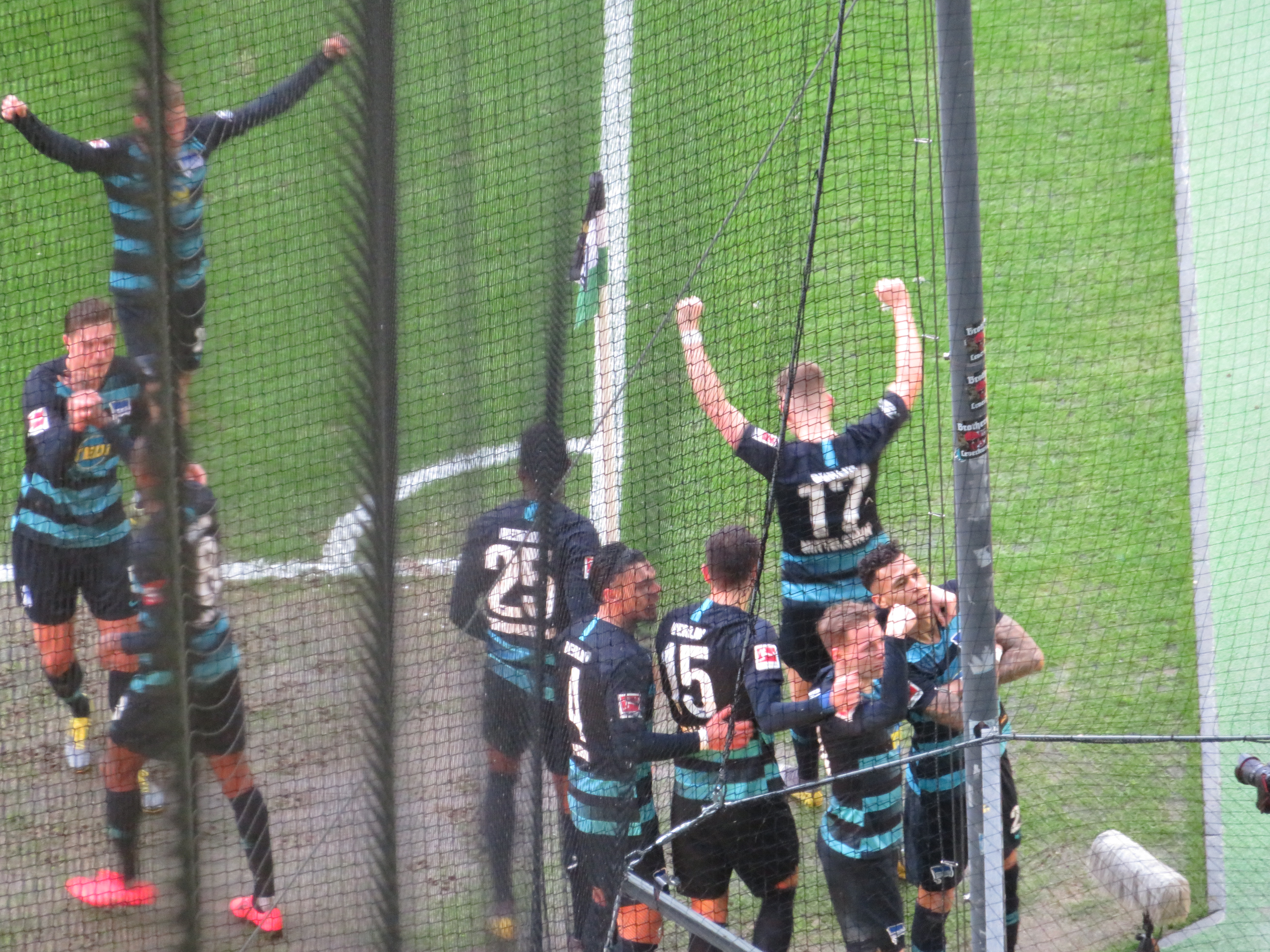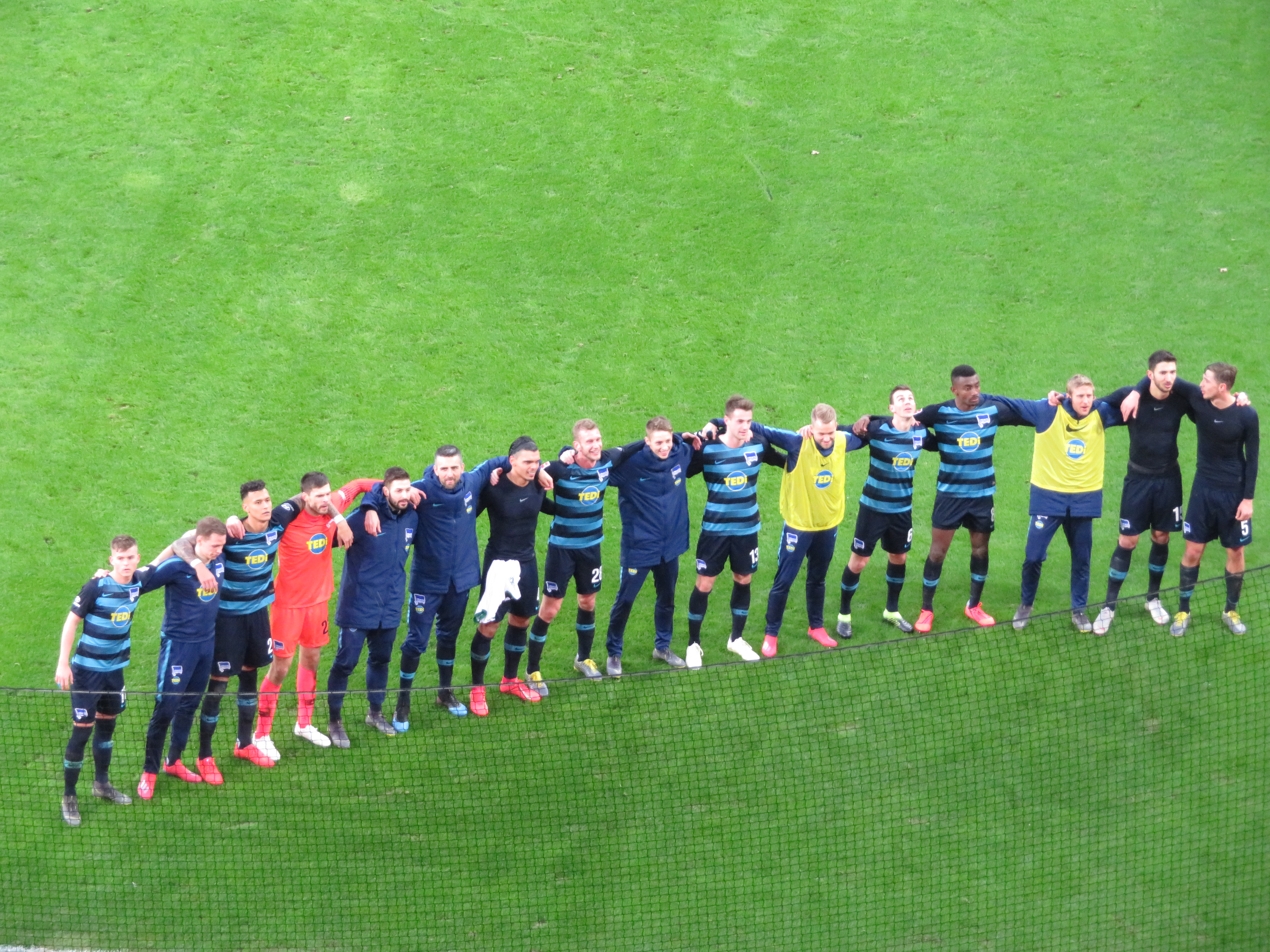 Circa 2.000 Herthaner sorgten am Samstagnachmittag für einen halbwegs akzeptabel gefüllten Gästeblock. Getragen von der guten Mannschaftsleistung, legte man auch einen guten Auftritt hin. Über viele Pöbeleien in Richtung Heimkurve, fanden wir zu guter Lautstärke und spätestens in der zweiten Halbzeit gehörte das Stadion endgültig uns und es machte richtig Spaß. Jetzt wurden spontan Lieder erfunden und in wirrer Reihenfolge gesungen. Richtig gut.
