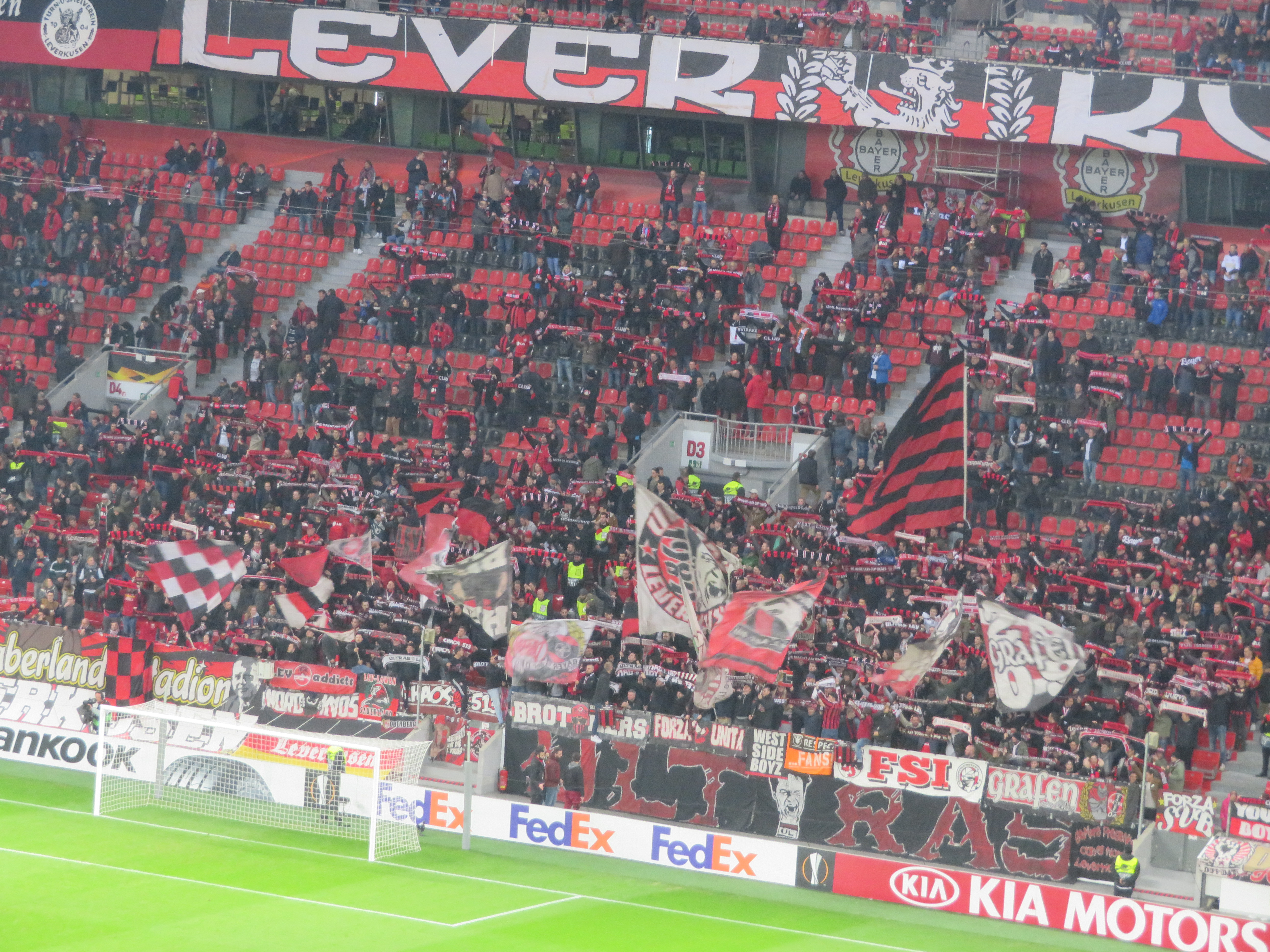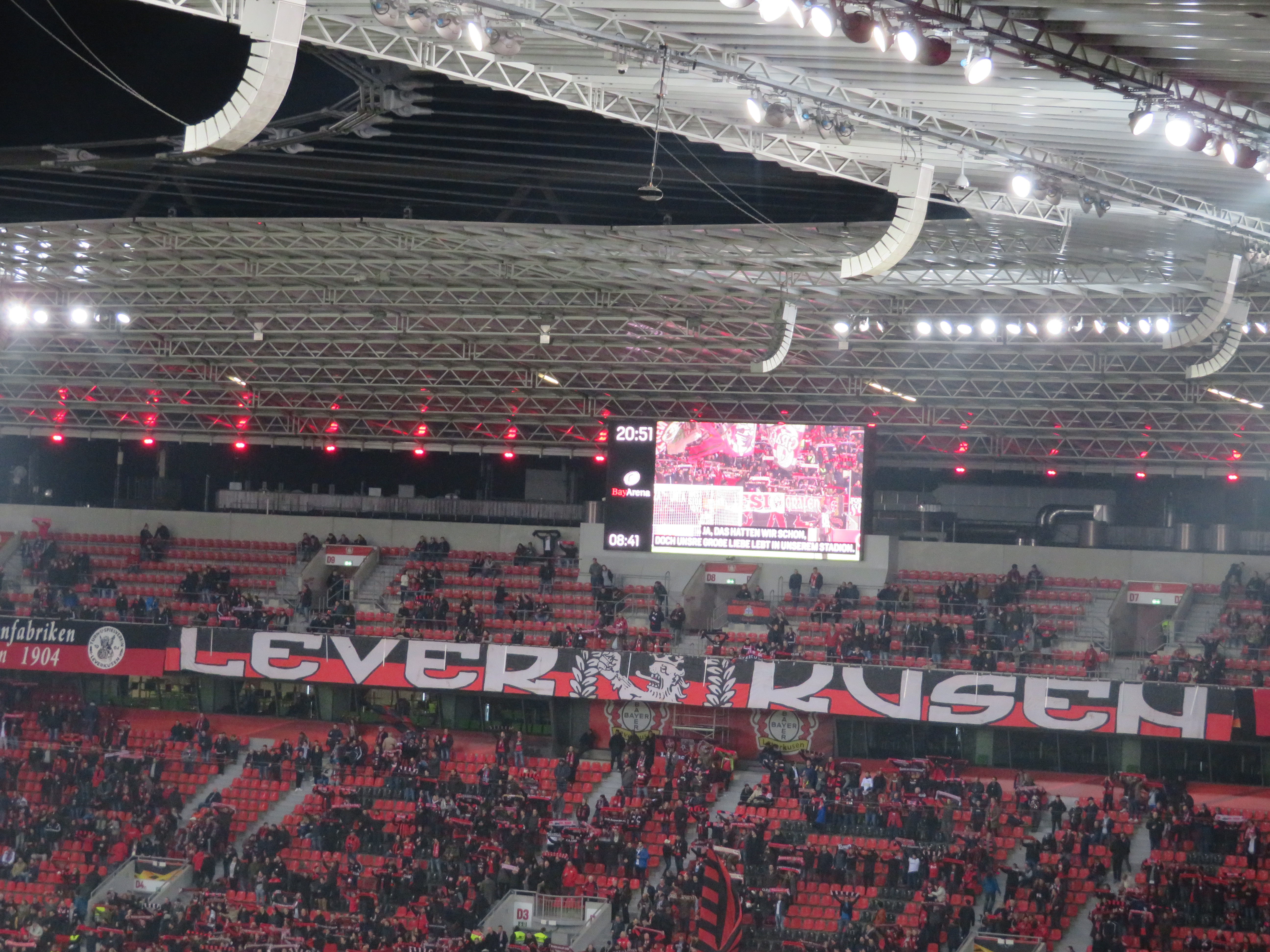 Was mich wirklich negativ überraschte war die leere Kurve der Leverkusener. Als Herthaner kennt man ja ein leeres Stadion bei internationalen Auftritten, aber die Kurve ist bei uns doch immer gut gefüllt. Nicht so in Leverkusen. Mit viel gutem Willen kann man die Kurve vielleicht als halbvoll bezeichnen. Auch qualitativ sah das nicht unbedingt nach einem guten Mob aus. Die Anwesenden machten das Beste draus und lieferten den erwarteten Support ab. Standardmelodien, bei denen sich nur selten der Fuß verselbstständigte und mitwippte. Dennoch den Umständen entsprechend solide und alles schon schlechter gesehen in Leverkusen.
