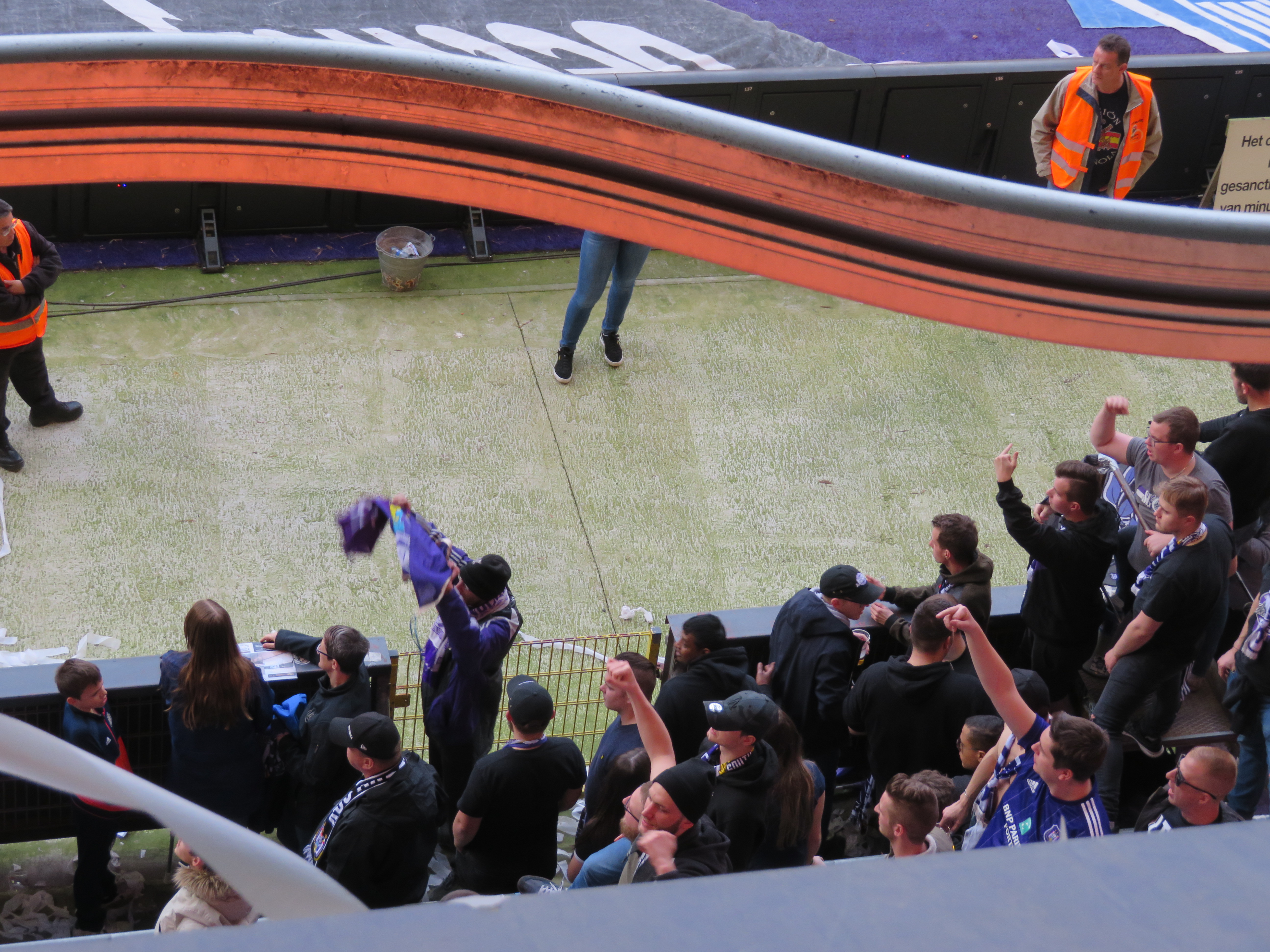 Das Spiel war auch mitreißend. Brügge ging früh in Führung und machte danach ekelhaftes Zeitspiel. Anderlecht glich aus und konnte kurz vor Ende sogar in Führung gehen. Jetzt tickte alles aus und der Torwart rannte in die Kurve und feierte mit den Fans. Leider gleich Brügge postwendend aus und provozierte den Rest des Stadions. Was war hier los? Der Ball traf noch einmal die Latte, aber ging nicht ins Tor. So blieb es bei einem fulminanten 2:2.