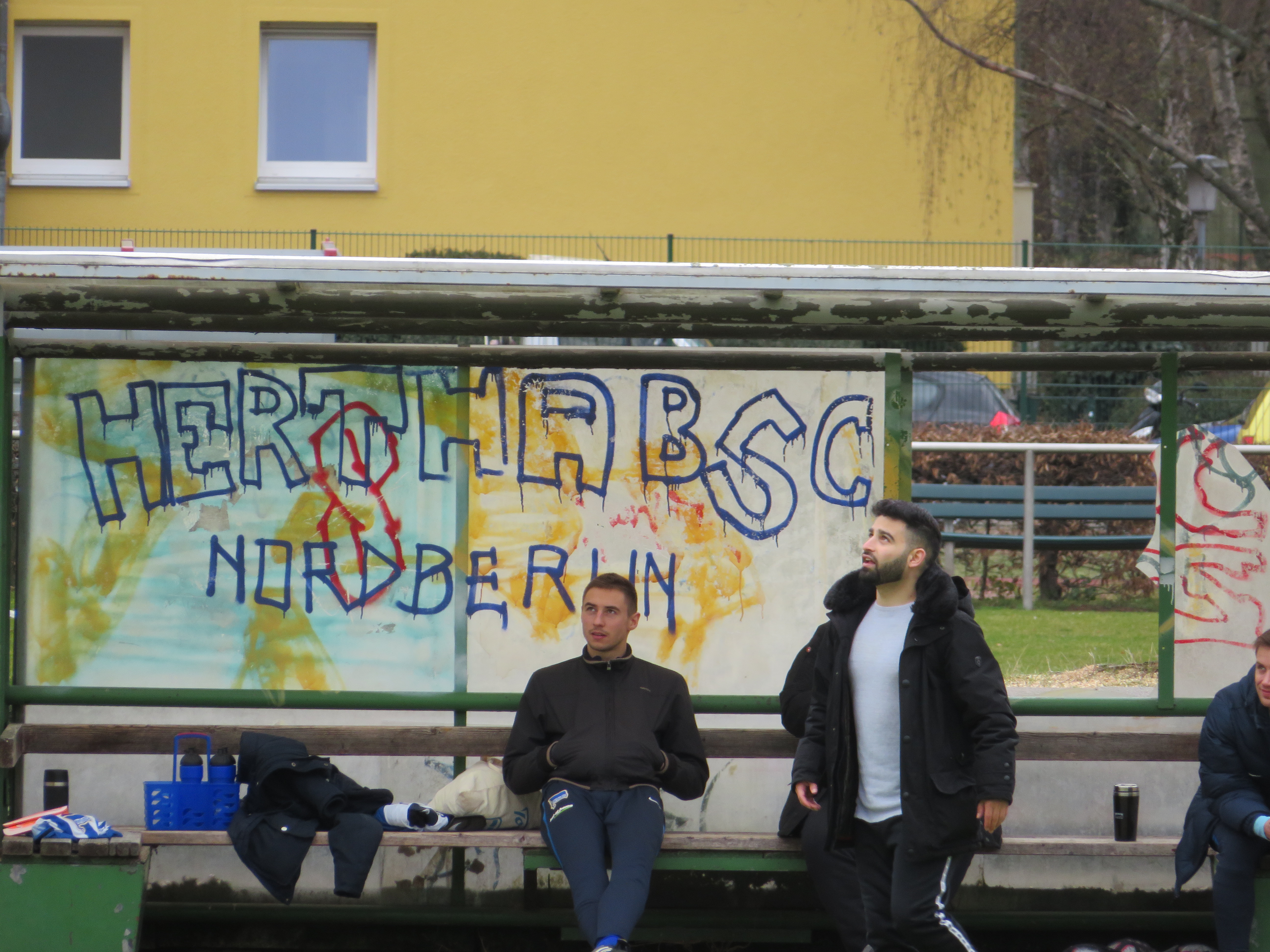 In der zweiten Halbzeit zog es dann zu und das Leiden begann. Offensichtlich fühlten sich die Mannschaften ähnlich, denn nach einer tollen ersten Halbzeit der Blau-Weißen, lief in der zweiten Halbzeit so gar nichts mehr zusammen. Mariendorf kam nun zu etlichen Chancen und konnte mit dem 1:4 zumindest noch Ergebniskosmetik betreiben. Hertha III bleibt damit auf Rang 4 der Tabelle und kann sich leise Hoffnung machen noch ein Wörtchen im Aufstiegsrennen mitzureden. Schön war es. Nach dem Abpfiff machten wir uns gemeinsam mit einem kleinen Tross auf dem Weg zum Leopoldplatz, um die nächste Hertha Mannschaft zu bewundern.