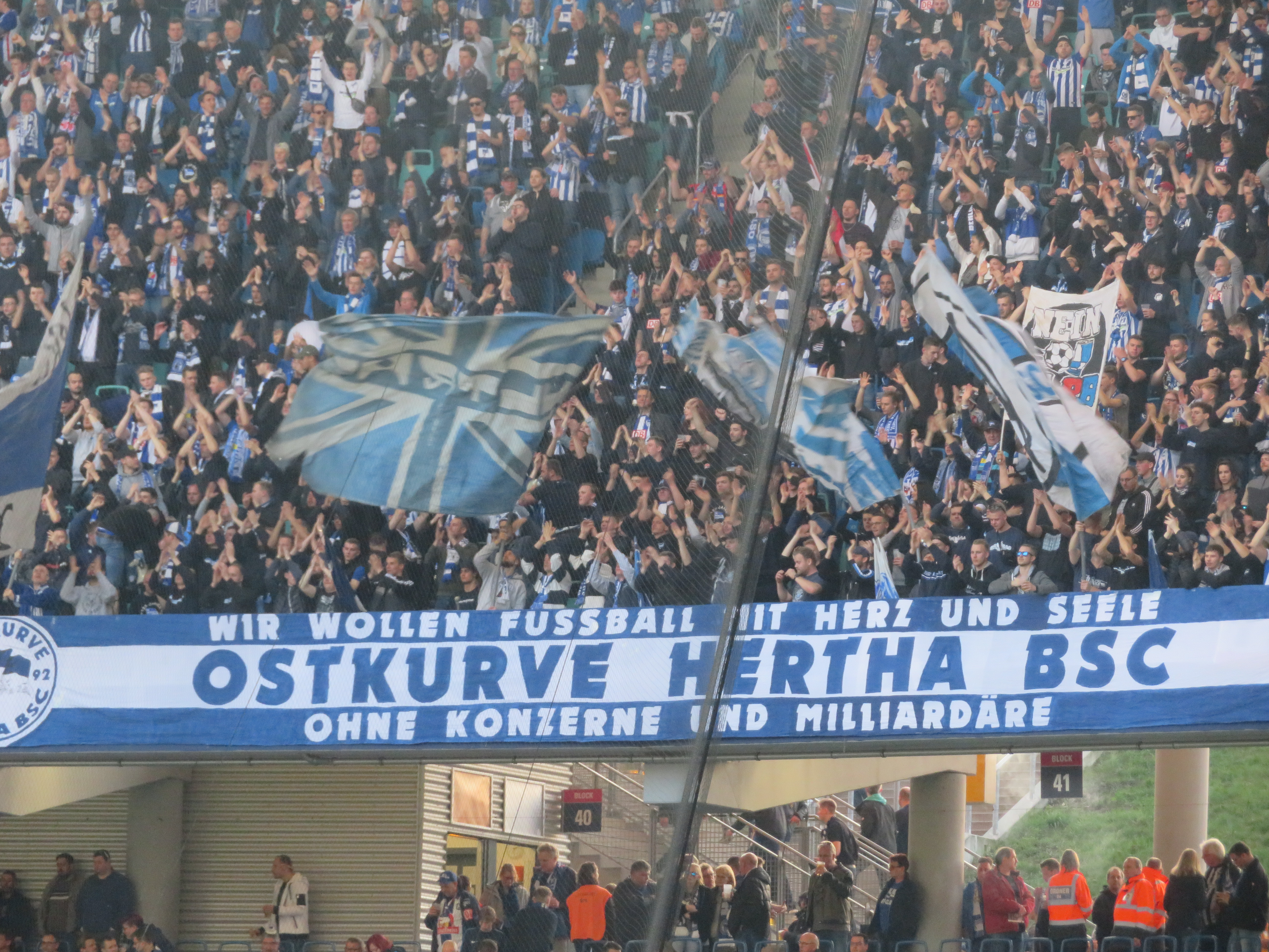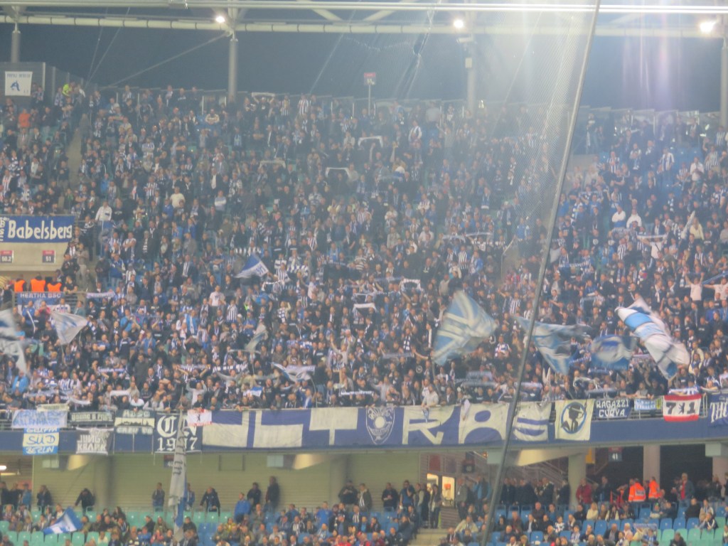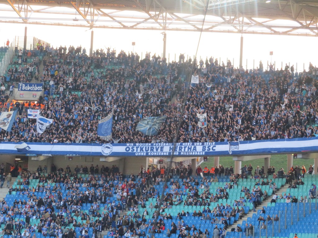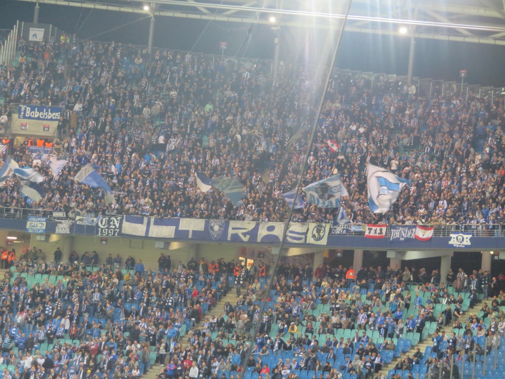 Es war wirklich ein sehr guter Auftritt. Von der ersten Minute an, stimmte die Mitmachquote und wir schepperten die Gesänge gut raus. Nur ganz selten ließ die Lautstärke nach. Trotz der immer furchtbareren Darbietung auf dem Rasen, ließen wir nicht nach. „In meinem Zimmer hängt ein Wimpel an der Wand“ wurde zelebriert und auch das „Wir sind keine Konsumenten“ Lied sorgte für Ausraster im unteren Bereich des Blocks. Ein Auftritt, auf den man stolz sein kann. Danke an jeden mitgereisten Herthaner.