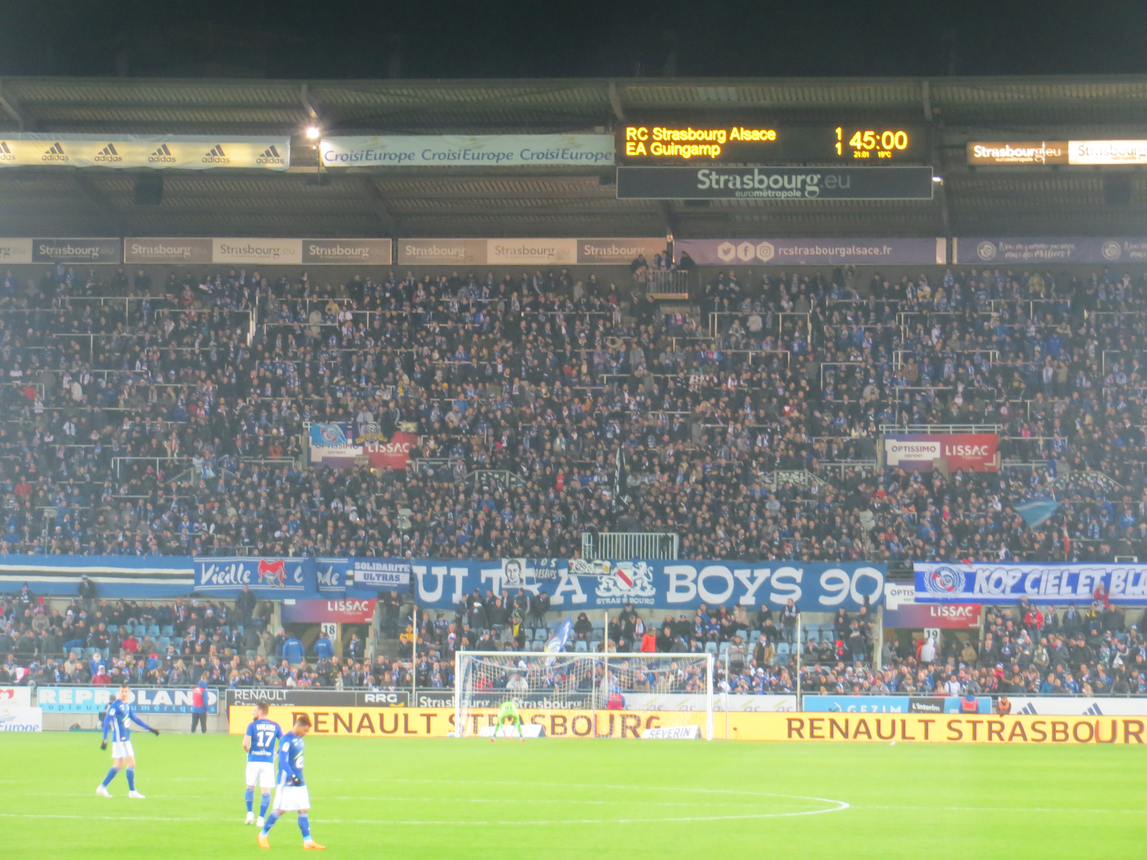 Auch auf dem Rasen entwickelte sich ein spannender Schlagabtausch. Guingamp ging zwei Mal in Führung, aber Straßburg schlug fast immer unmittelbar zurück. Dann konnte Straßburg sogar mit 3:2 in Führung gehen. Unglücklicherweise fing sich die Mannschaft kurz vor Schluss noch den Ausgleich. Bitter, aber verschmerzbar. So sahen es auch die Zuschauer, denn es gab viel Applaus für die Leistung der Mannschaft.