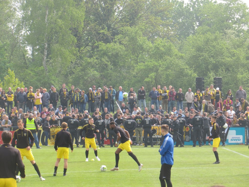 Vor dem Spiel bauten sich etliche Polizisten direkt vor den Zaunfahnen der Ultragruppen auf. Was das sollte, wusste niemand. Irgendwann verschwanden die Polizisten und es wurde ein sehr entspannter Nachmittag. Aachen trällerte vor sich hin ohne die ganz großen Ausreißer zu verbuchen. Wieder einmal optisch und akustisch ein sehr ordentlicher Auftritt. Support für Düren gab es bis auf Applaus nicht.