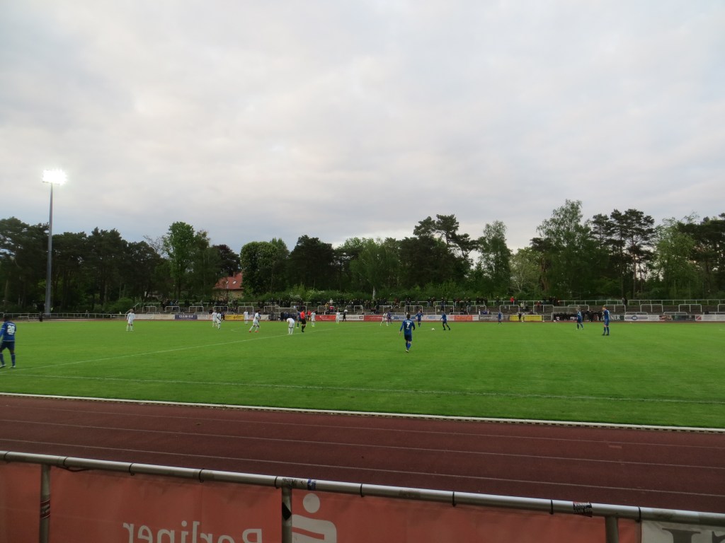 Wir lösten den Eintritt und versorgten uns dann noch mit Speis und Trank, der wie in Zehlendorf üblich wieder mundete und fair bepreist war. Dann suchten wir uns einen Platz auf der wunderschönen Tribüne und guckten ein sehr sehenswertes Spiel. Wir quatschten die gesamte Partie durch und waren somit nicht immer komplett aufmerksam. Was wir sahen, war jedoch groß. Es ging wirklich ständig hin und her und es gab auf beiden Seiten extrem viele Torchancen. Beide Mannschaften waren nahezu auf Augenhöhe, sodass die 2:3 Niederlage für Zehlendorf bitter war, zumal man zwei Mal in Führung gelegen hatte. Tebe wahrt durch den Sieg die Chancen im Aufstiegsrennen, wobei der große Konkurrent Lichtenberg am Folgetag ebenfalls einen Sieg verbuchen konnte. In der Theorie würde ich Tebe den Aufstieg gönnen, aber unter den konkreten Umständen mit diesem Investor- wirklich nicht.