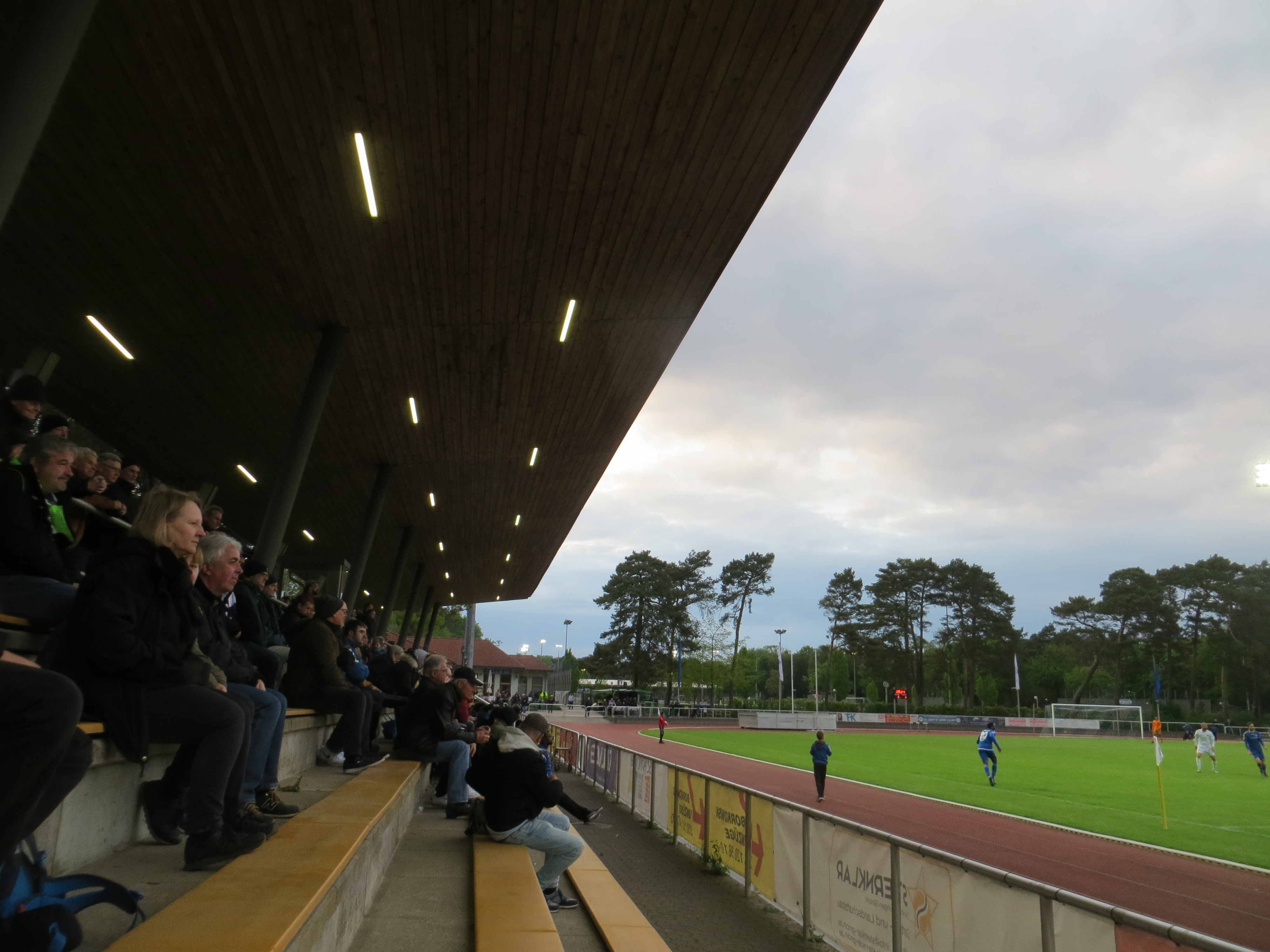 Der Boykott der Anhängerschaft scheint nicht von allen Fans getragen zu werden. Jedenfalls waren zahlreiche Tebe-Anhänger heute im Stadion und ließen ab und an auch mal Sprechchöre hören. Bis auf fehlende Zaunfahnen, war es also kein großer Unterschied zu sonstigen Spielen. Ich habe Tebe noch nie durchgehend singen hören. Generell war das Zuschauerinteresse extrem hoch. Über 600 Leute sind für ein Oberligaduell schon eine gute Hausnummer. Neben den Anhängern auf beiden Seiten, fanden sich auch zahlreiche Hopper auf den Tribünen ein.