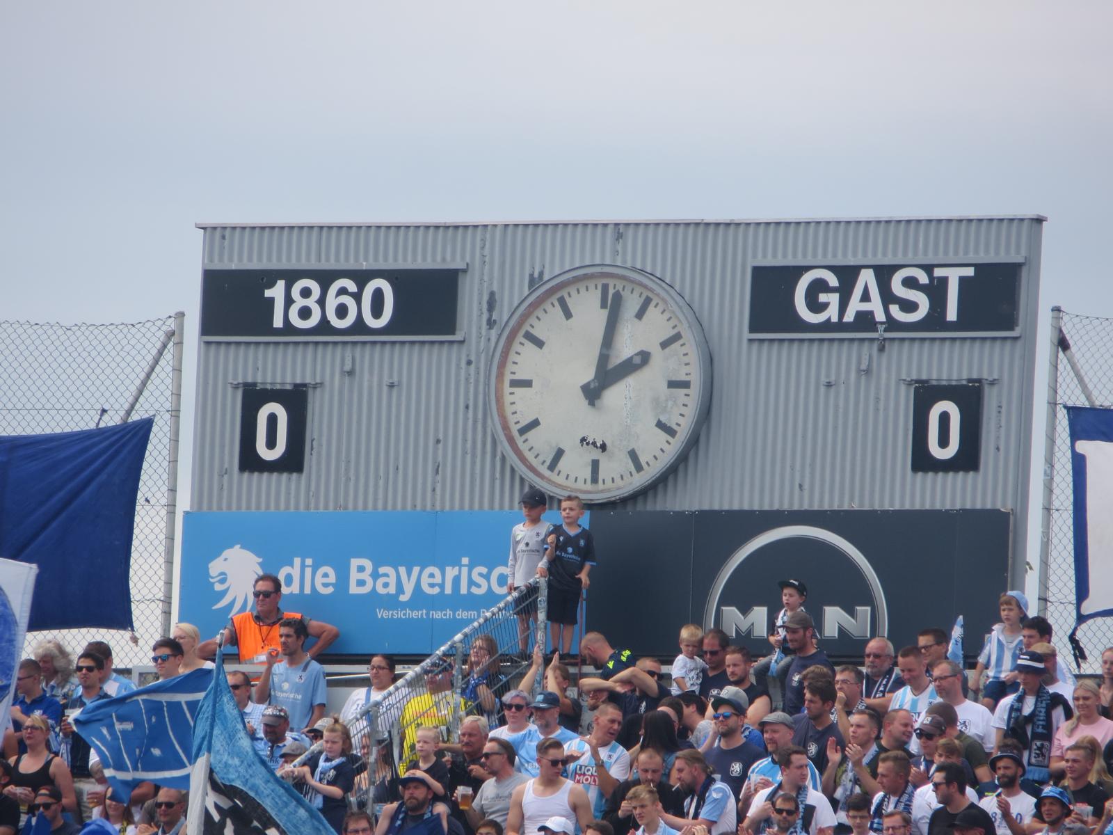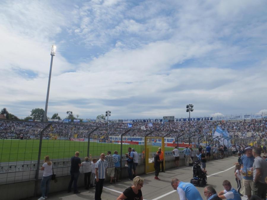 Ich betrat dann das Grünwalder und nahm dann auch schnell meinen Sitzplatz in der „Stehhalle“ ein. Die Sicht war durch einen unnötig hohen Zaun ziemlich eingeschränkt. Das erinnerte fast ein wenig an Sampdoria. Ansonsten war das aber schon eine wirklich geile Schüssel. Vor allem die Kurve der Sechziger sah einfach stark aus. Richtig oldschool und wunderschön. Auch die Lage des Stadions ist eine sehr willkommene Abwechslung zu den ganzen modernen Dingern am Stadtrand.