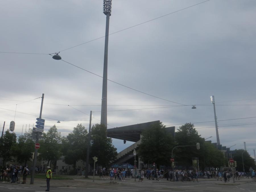 Der Terminierungsgott war mir gnädig an diesem Wochenende und so hatte ich das Glück am heutigen Tag endlich mal das Grünwalder Stadion zu betreten. Erst einmal startete ich aber sehr gemächlich in den Tag und trödelte so lange rum, dass dann am Ende gar nicht mehr so ein komfortabler Zeitpuffer da war, wie erwartet. Es ging wieder mit dem Fahrrad zum Stadion und das Grünwalder in Giesing, ist wesentlich attraktiver gelegen, als das Ufo der Bayern. Ich musste zunächst noch zur Geschäftsstelle, um mein Ticket abzuholen und fuhr dann die letzten Meter bis zum Stadion. Am Morgen hatte das Hotel kein Fahrradschloss mehr, sodass ich nun ein erhebliches Problem hatte. Dank unserer ausbeuterischeren und wenig nachhaltigen Lebensweise, konnte ich mir für einen sagenhaften Euro ein etwas ruhigeres Gewissen kaufen. Kranke Welt!