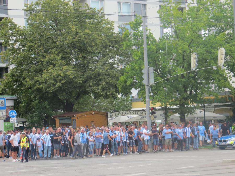 1860 ist auch so ein Fall. Klar, gerade aufgrund des Werdegangs der letzten Jahre, muss man die eigentlich mögen und auch durch das Stadion ist man gewillt sie fast als Anti-Kommerzverein zu sehen. Die Realität sieht anders aus und das Publikum ist krank fordernd. In der Stehhalle gab es auch einen kleinen Block an Leuten, die immer mal wieder Sprechchöre startete und damit in der Regel gegen die Kurve ansang. Die Kurve war optisch stark, aber die Lautstärke war auch eher dürftig. Auch melodisch war das viel Standard und ein bisschen Ballermann. Begeistert war ich von dem Auftritt nicht wirklich. Auch das Publikum neben mir war einfach merkwürdig.