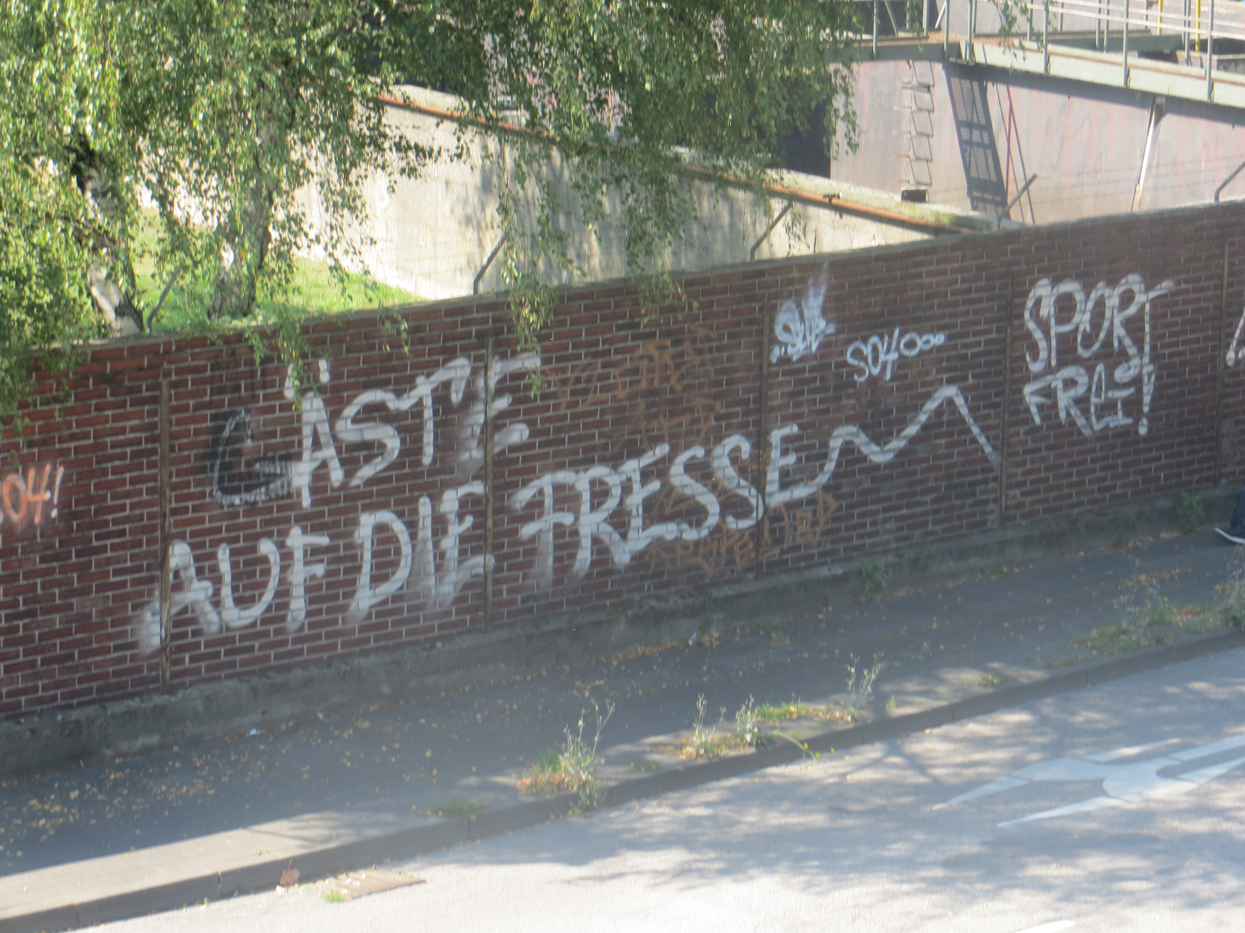 Aber nun zurück! Aus jahrelanger schmerzlicher Erfahrung in Gelsenkirchener S-Bahnen, habe ich meine Lehren gezogen und so habe ich im vergangenen Jahr, gemeinsam mit dem Klabauterkeaper die sechs Kilometer zum Stadion zu Fuß bewältigt. So voller Glück, dass ich mir die S-Bahnfahrt sparte, glorifizierte ich etwas den Weg. Heute sahen wir das beide mit realistischeren Augen. Ein Fußweg, der fünf Kilometer an der Hauptstraße entlangführt, ehe er dann kurz an einem Fluss entlangführt, der schlimmer riecht als jede Kläranlage im restlichen Deutschland. Oh ja, Ruhrpott! Du bist ein Idyll. Gegen 14.30 erreichte ich dann das Stadion.