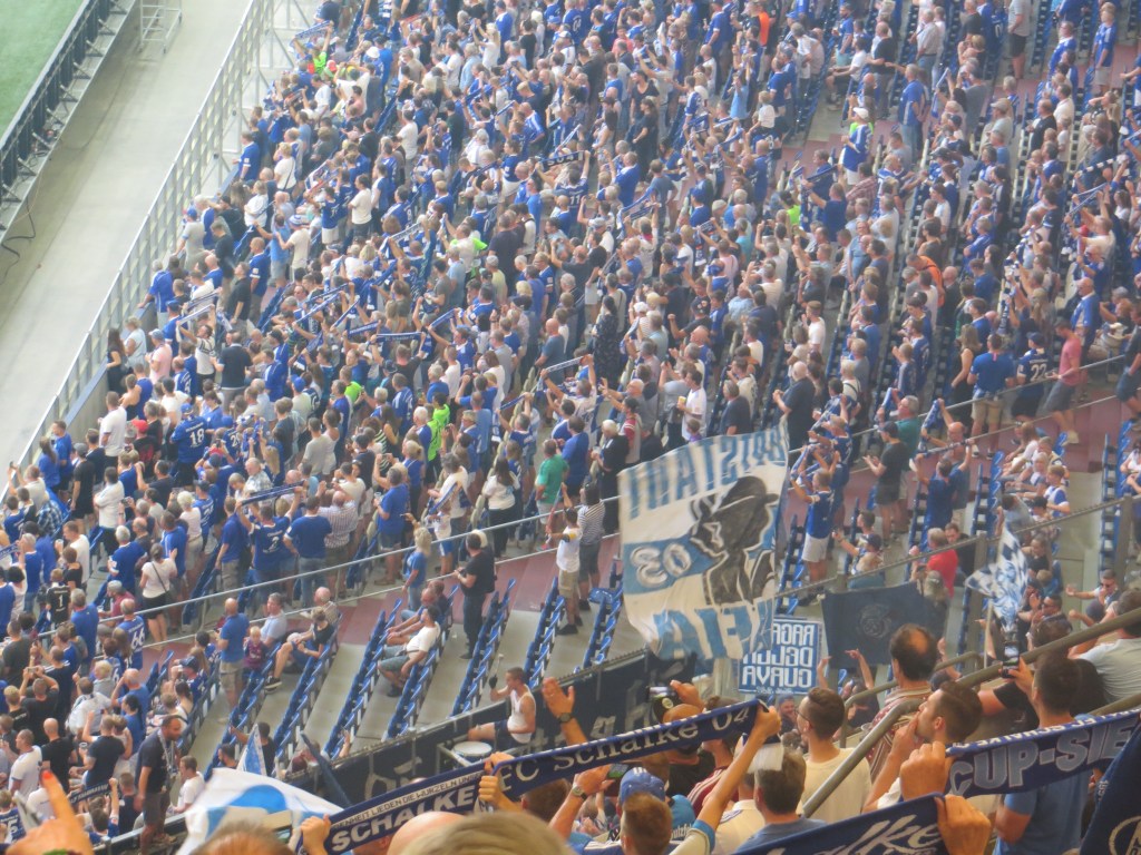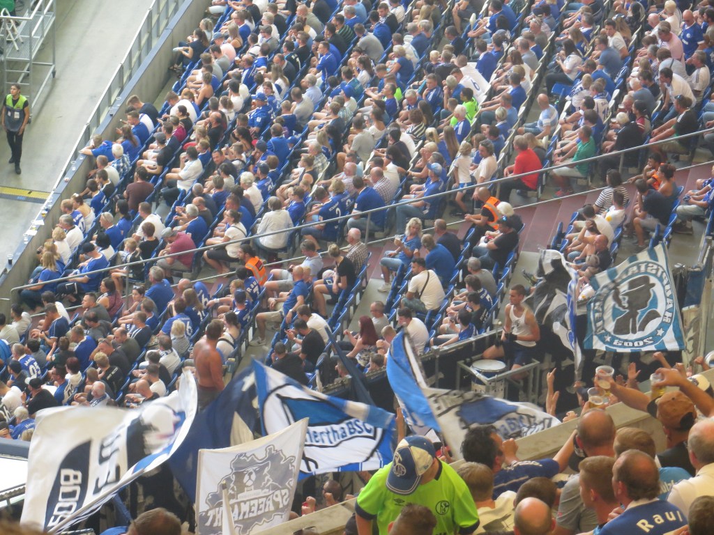 Auf der Gegenseite sah es nicht wirklich besser aus. Zumindest hatten die Schalker noch die Sonne als Ausrede parat. Auch dort wurde jedoch eher geflüstert als geschrien und so wurde es nur selten laut im Stadion. Ein Tag, wie ihn sich die Offiziellen wünschen. Hintergrundgeräusche für das Event- ohne anzuecken und ohne Leidenschaft.