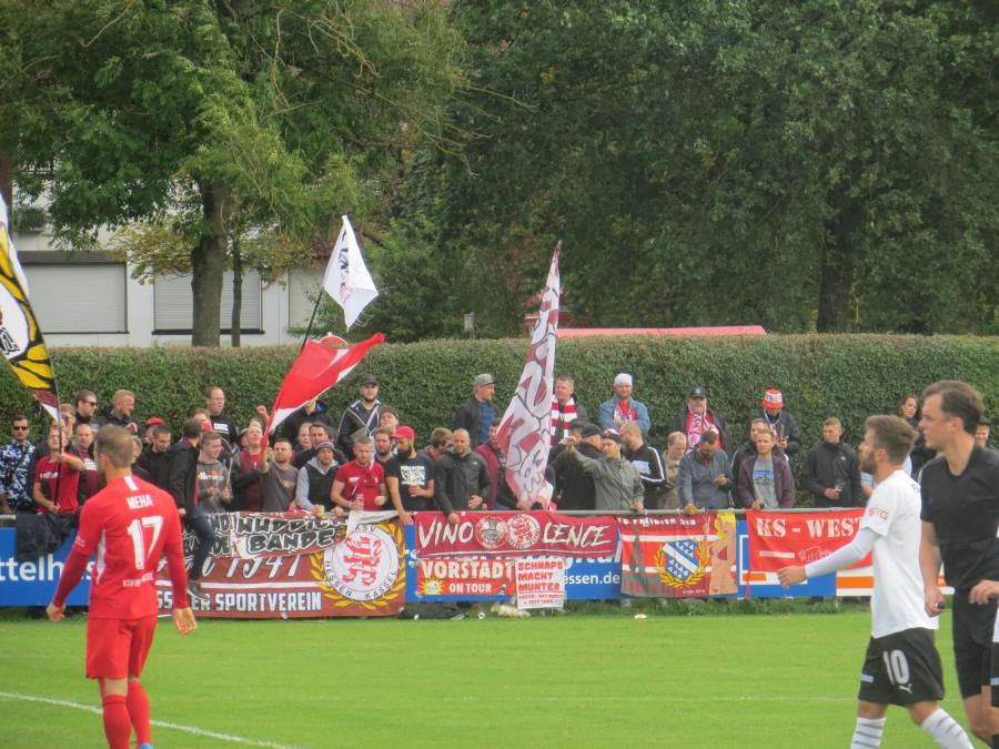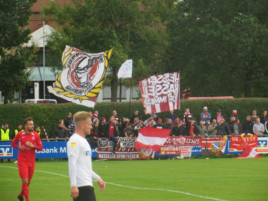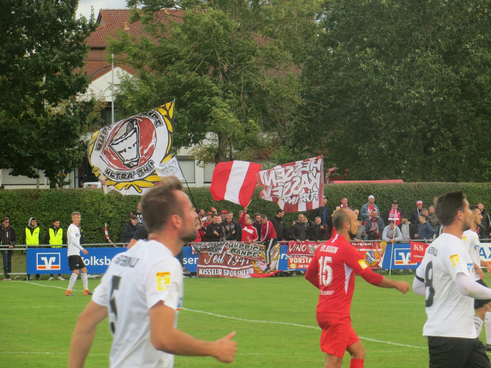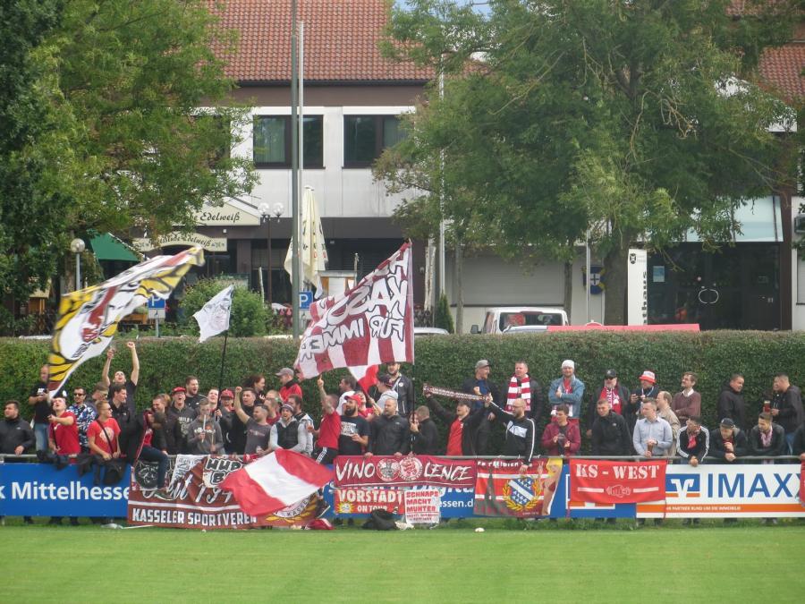 Die Kassler Fanszene hatte sich auf der Gegenseite positioniert. 90 Minuten wurden die bekannten Lieder zum Besten gegeben. Circa 40 Leute beteiligten sich konstant am Support. Ob man selber an einem Dorfplatz so einen Auftritt hinlegen würde?
