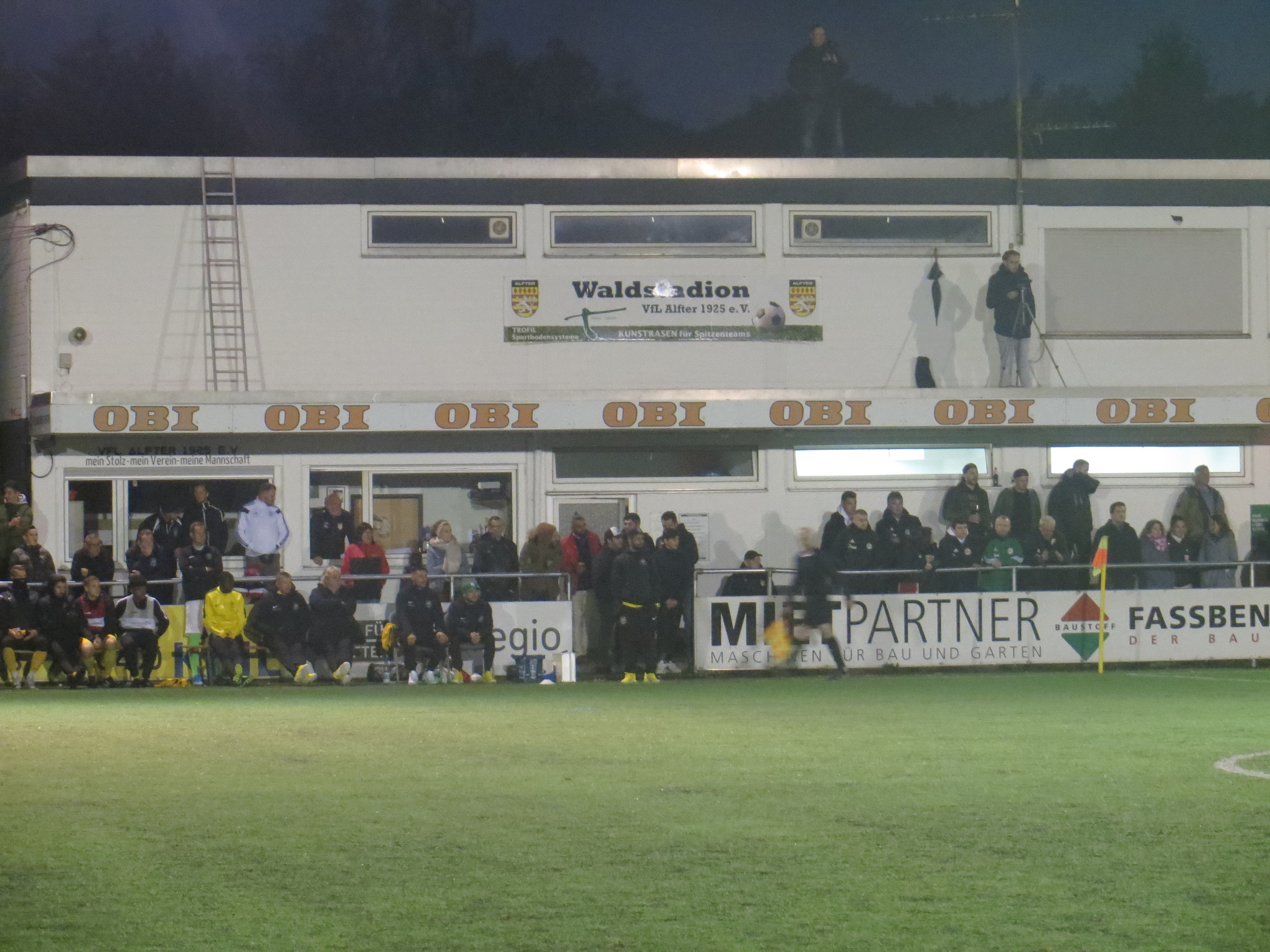Das Waldstadion Alfter ist ein gut ausgebauter Sportplatz, der leider mit Kunstrasen ausgestattet ist. Es gibt ein paar Stufen und die Umgebung ist wirklich idyllisch. Dazu ein schönes Imbishäuschen. Aufregend ist etwas anderes, aber schon hinnehmbar. Die Preise waren dann fair und es schmeckte wirklich gut. Zudem wurde nicht kontrolliert, was es mir ermöglichte einige mitgebrachte Schnäpse zu genießen. Diese belegen seit vielen Monaten Stauraum in meinem Schrank, sodass ich endlich mal zugriff. Die einzige schlechte Entscheidung war es nicht mehr Schnäpse mitzunehmen, denn es war schweinekalt. Ich zog zwei Jacken übereinander an und fror trotzdem. Auch der Linienrichter guckte ziemlich neidisch auf meine Kurzen.