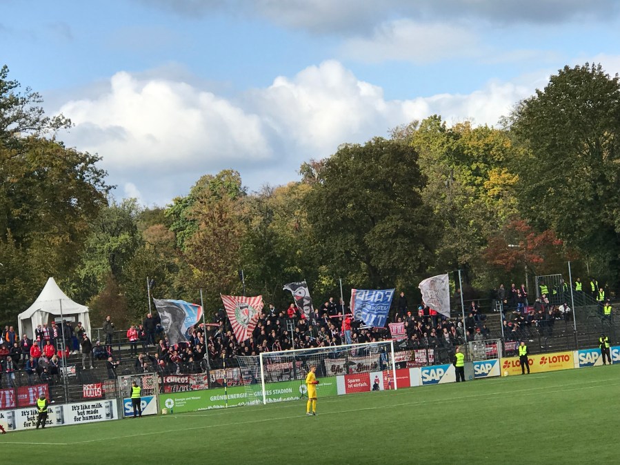 Generell machte es heute Spaß, da in allen Ecken des Stadions etwas passierte. Die Underdogs hatten eine Trommel dabei und waren wenn auch leise konstant zu vernehmen. Das Filmstadtinferno wusste vor allem durch das schicke Intro zu gefallen und war auch sonst nicht schlecht aufgelegt. Gerade die Lautstärke überzeugte mich jedoch wieder eher nicht.