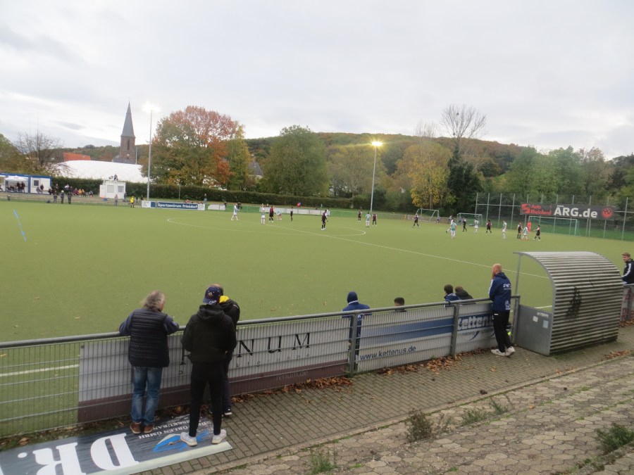 Mit einem ganz kräftigen Derbyblues ging es am Sonntag zurück nach NRW. Für die 570 Kilometer benötigte ich mehr als sieben Stunden. Irgendwie schon ernüchternd in welchem Zustand unsere Zuginfrastruktur in Deutschland ist. So wurde bereits am Hauptbahnhof klar, hier muss alles passen, um pünktlich zum Anpfiff in Friesdorf zu sein. Es passte nicht alles. Mit einem kleinen Boxenstop zu Hause, machte ich mich direkt mit dem Fahrrad auf dem Weg nach Friesdorf, um diesen Ground endlich kreuzen zu können.