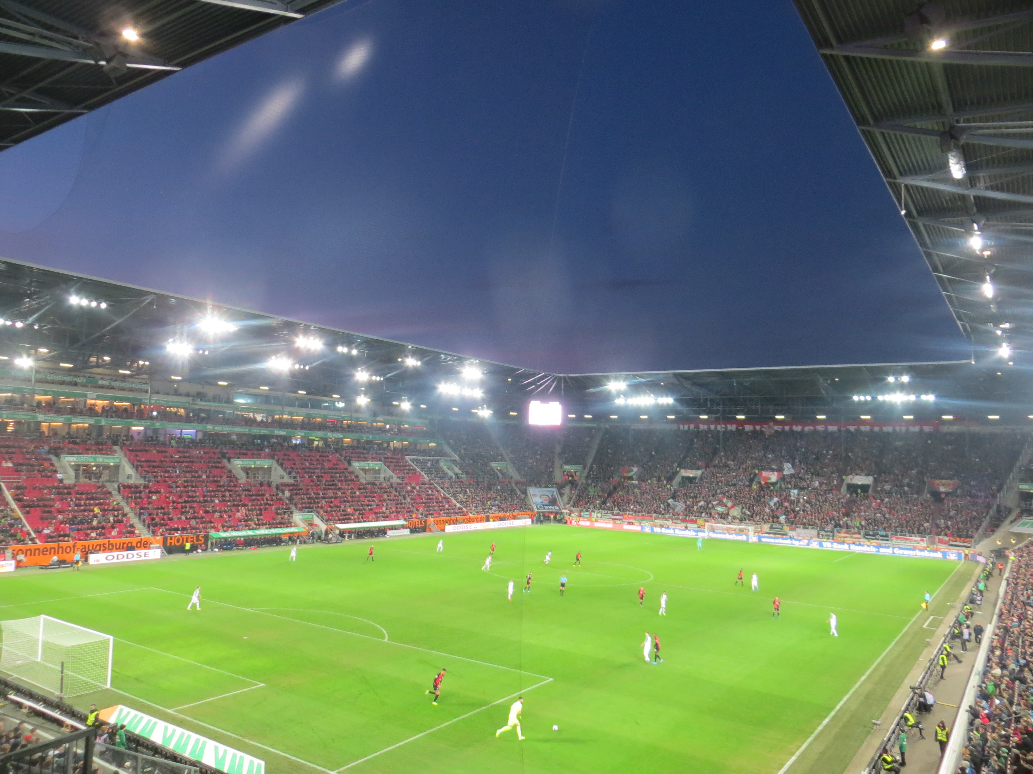 Der angenehme Nebeneffekt der geänderten Urlaubspläne war, dass ich auf dem Rückweg noch das Spiel der geliebten Hertha in Augsburg mitnehmen konnte. So ging es am frühen Morgen aus Zürich nach Augsburg. Dabei saß ich in einem Zug voller VFB Fans, die zum Derby gegen den KSC fuhren. Ich erreichte dann Augsburg und machte noch einen kleinen Abstecher zum Königsplatz und kehrte in einem nahegelegenen Restaurant ein. Ein Wiener Schnitzel und etwas bayerische Folklore wollte ich mir noch geben, bevor ich zum seelenlosen Neubau an der Autobahn fuhr. Klar, es gibt viele Städte (lies: Gelsenkirchen) da bin ich auch froh, wenn ich möglichst schnell wieder weg bin. In der Regel finde ich es aber schade, wenn es wirklich nur heißt: Verkehrsmittel-Gästeblock-Verkehrsmittel-Tschüss. Die Spiele mit der Hertha sind schon eine gute Gelegenheit auch Städte kennenzulernen. Es gibt sicherlich aufregendere Orte als Augsburg, aber es geht auch wesentlich schlimmer.