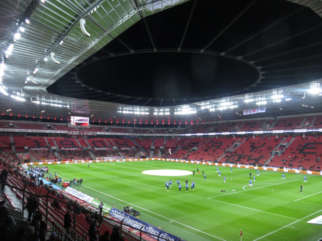 Wenn einem am Wochenende vor einem Spiel in Leverkusen zahlreiche Leute mit Worten wie „Heimspiel“ ansprechen, dann beginnt man sein Leben zu hinterfragen. Leverkusen war immer etwas, was man vermeiden wollte. Schnell hin, schnell wieder weg. Die Devise gilt immer noch, aber plötzlich wohne ich ganz in der Nähe. Über die kurze Anreise freute ich mich dennoch, denn so konnte ich heute noch normal arbeiten und musste keinen wertvollen Urlaubstag opfern. Da sich aber ein Termin ziemlich in die Länge zog, wurde es mit dem auserkorenen Zug sehr knapp und ich schloss gerade mein Fahrrad an, als der Zug schon am Gleis stand. Glück gehabt und so erreichte ich 45 Minuten später bereits Leverkusen.