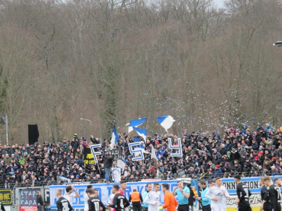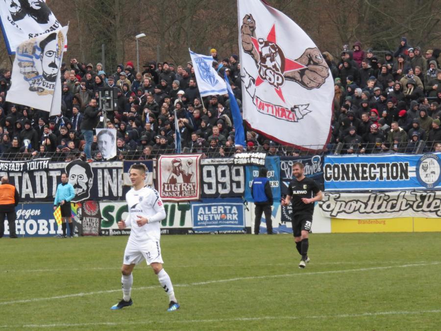 Sonntagnachmittag und in Babelsberg fand das erste Spiel nach der Winterpause statt. Die Babelsberger stecken mitten im Abstiegskampf und brauchen dringend Punkte, um den Klassenerhalt zu schaffen. Das alleine hätte den Spielbesuch schon gerechtfertigt. Zusätzlich wartete aber auch noch ein sehr attraktiver Gegner auf den Rängen, nämlich Chemie Leipzig. Wenige Tage vor der Partie wurde dann auch noch bekannt, dass Babelsberg Daniel Frahn verpflichtet hatte. Jener Daniel Frahn, dem wegen seiner (vermeintlichen) Kontakte zu Rechtsextremen in Chemnitz gekündigt wurde. Es konnte also spannend werden.