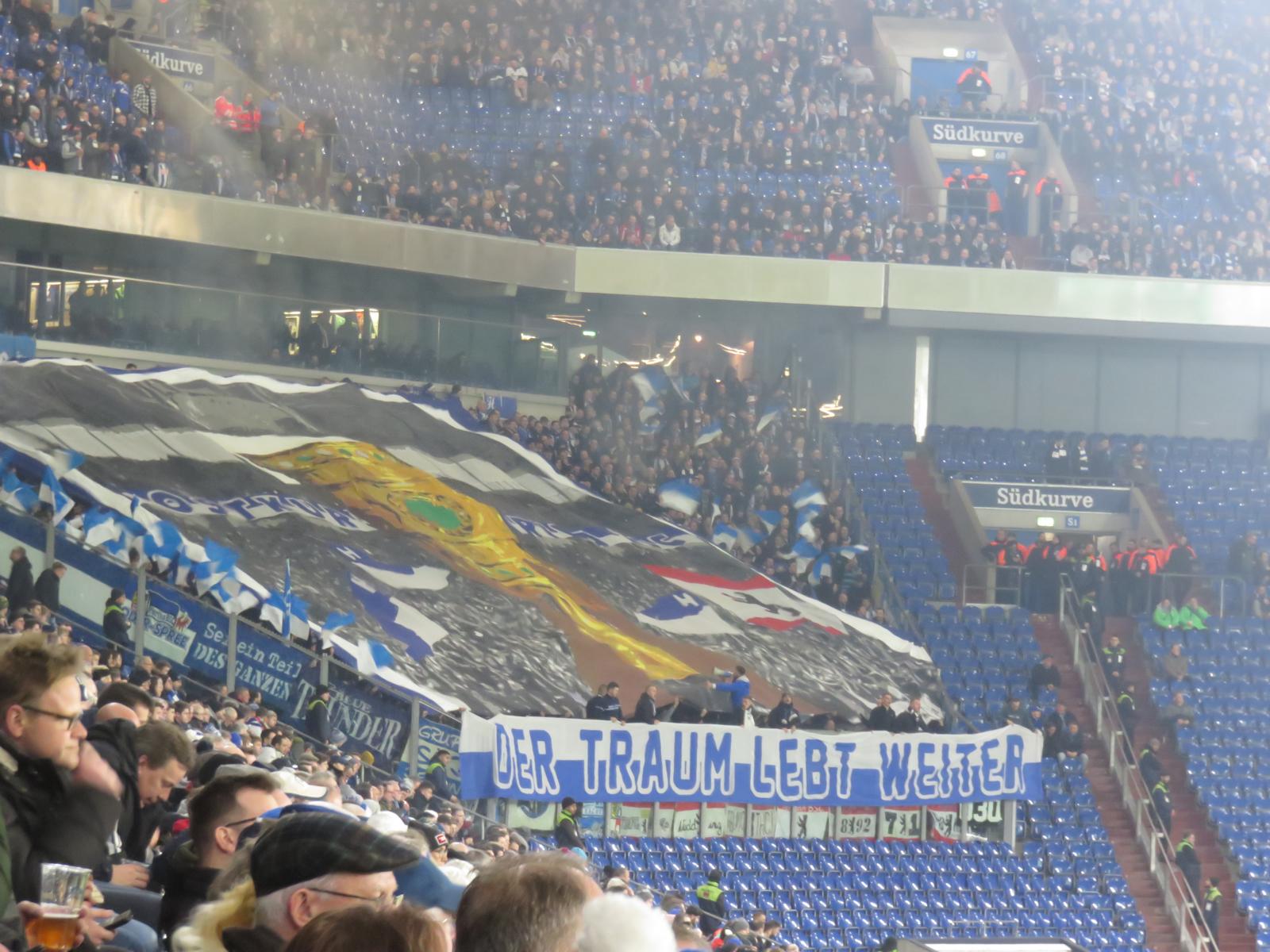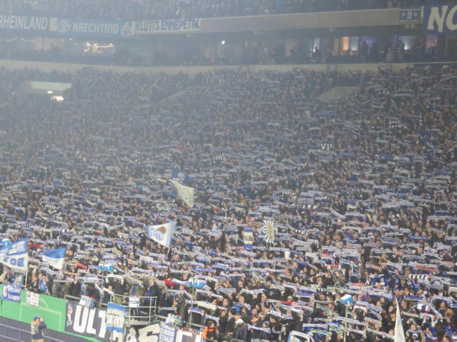 Spätestens jetzt, war dann auch ich dabei. Und nicht nur ich, nein alle Herthaner schienen plötzlich doch an den Sieg zu glauben. Die Gelsenkirchener Nordkurve wurde die ersten 60 Minuten klar in die Schranken gewiesen. Die Gesänge schallten durch die Halle und plötzlich kribbelte es wieder. Was gibt es schöneres, als mit seinen Jungs und Mädels zusammenzustehen und unter Flutlicht die schönste Fahne der Welt zu schwenken? Als die Mannschaft dann auch noch gut spielte und plötzlich mit 2:0 führte, traute ich meinen Augen kaum. Den anderen ging es ähnlich und in den Gesprächen in der Halbzeit war Fassungslosigkeit und der Anflug von Euphorie zu spüren.