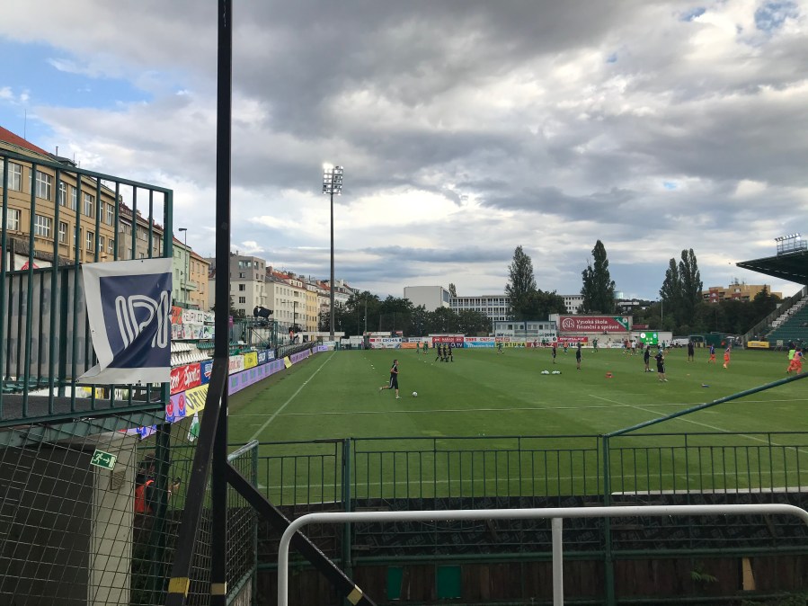 Nach einigen schönen Stunden in Prag, stiegen wir in die volle Straßenbahn, die uns in die Nähe des Stadions der Bohemians 1905 brachte. Der Verein mit dem lustigen Känguru spielt nur circa einen Kilometer Luftlinie entfernt von Slavia Prag. Das erste Mal in der noch jungen Saison war vor dem Spiel richtiges Gewusel im Stadionumfeld. Menschen mit grünen Schals und Trikots liefen in Richtung Stadion und ich hatte richtige Glücksgefühle.