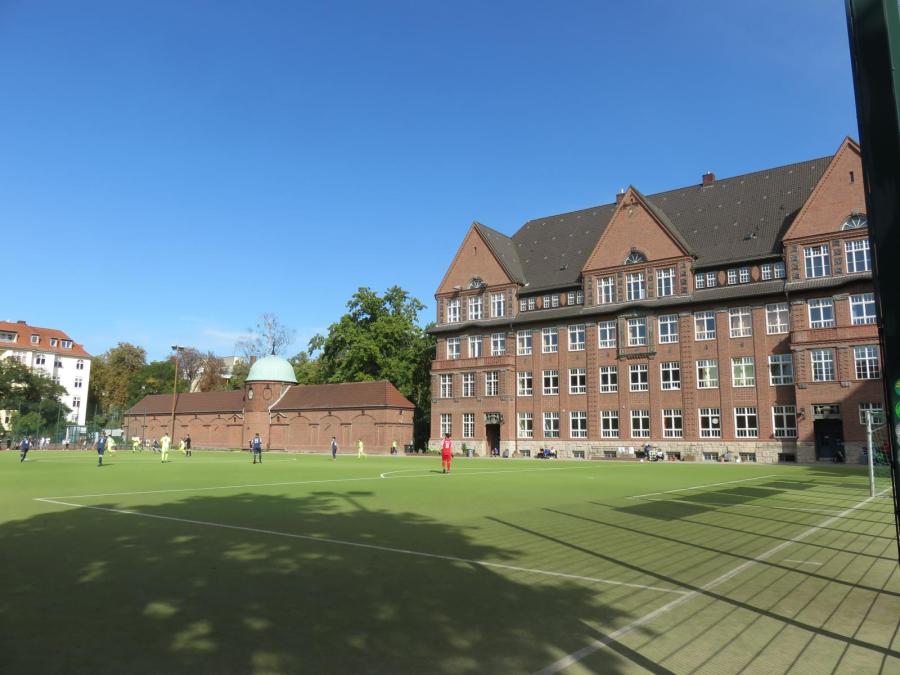 Wir hatten genug Zeit, um gemütlich in Richtung Friedenau zu laufen und sogar noch einen Stopp in einem Steglitzer Café einzulegen. Kurz vor dem Anpfiff erreichten wir die Sportanlage und sahen keinen wirklichen Eingang. Also folgten wir dem Beispiel der jugendlichen Fußballfreunde und kletterten über die Mauer des angrenzenden Spielplatzes und erreichten so den Platz. Nun waren wir durch Flatterband jedoch vom Südberliner Ebert getrennt, der den regulären Eingang auf der anderen Seite des Platzes genutzt hatte.