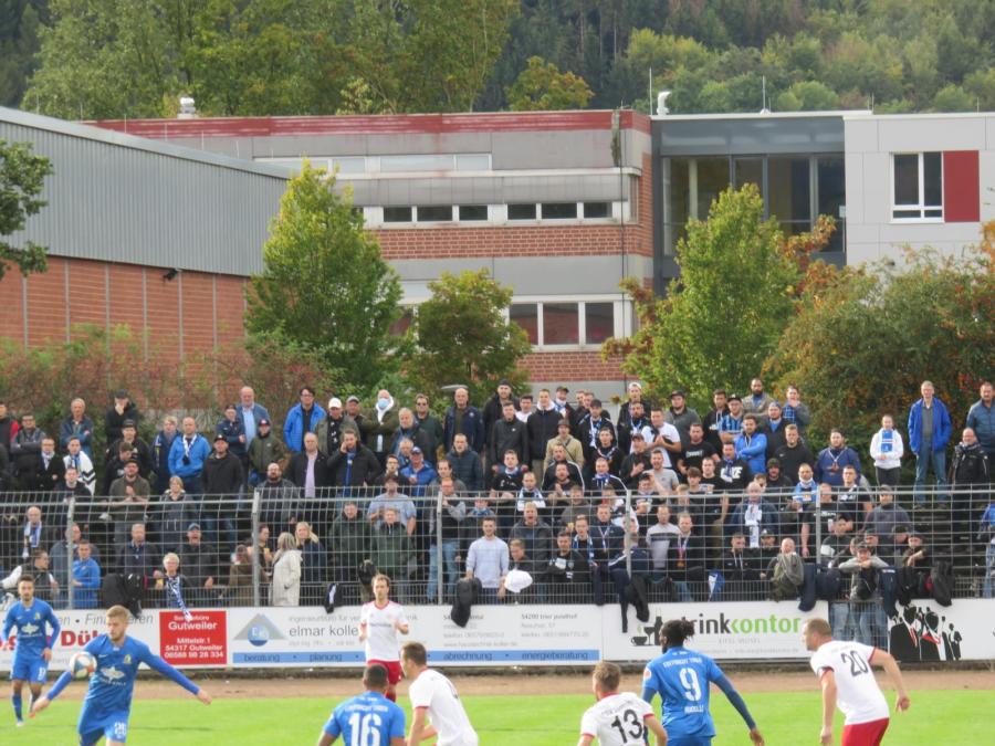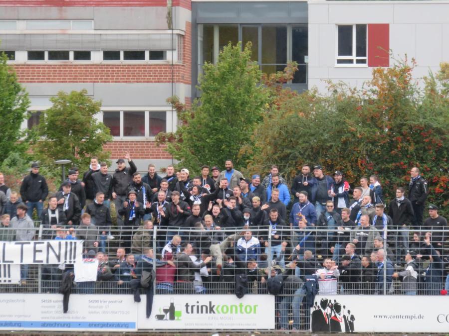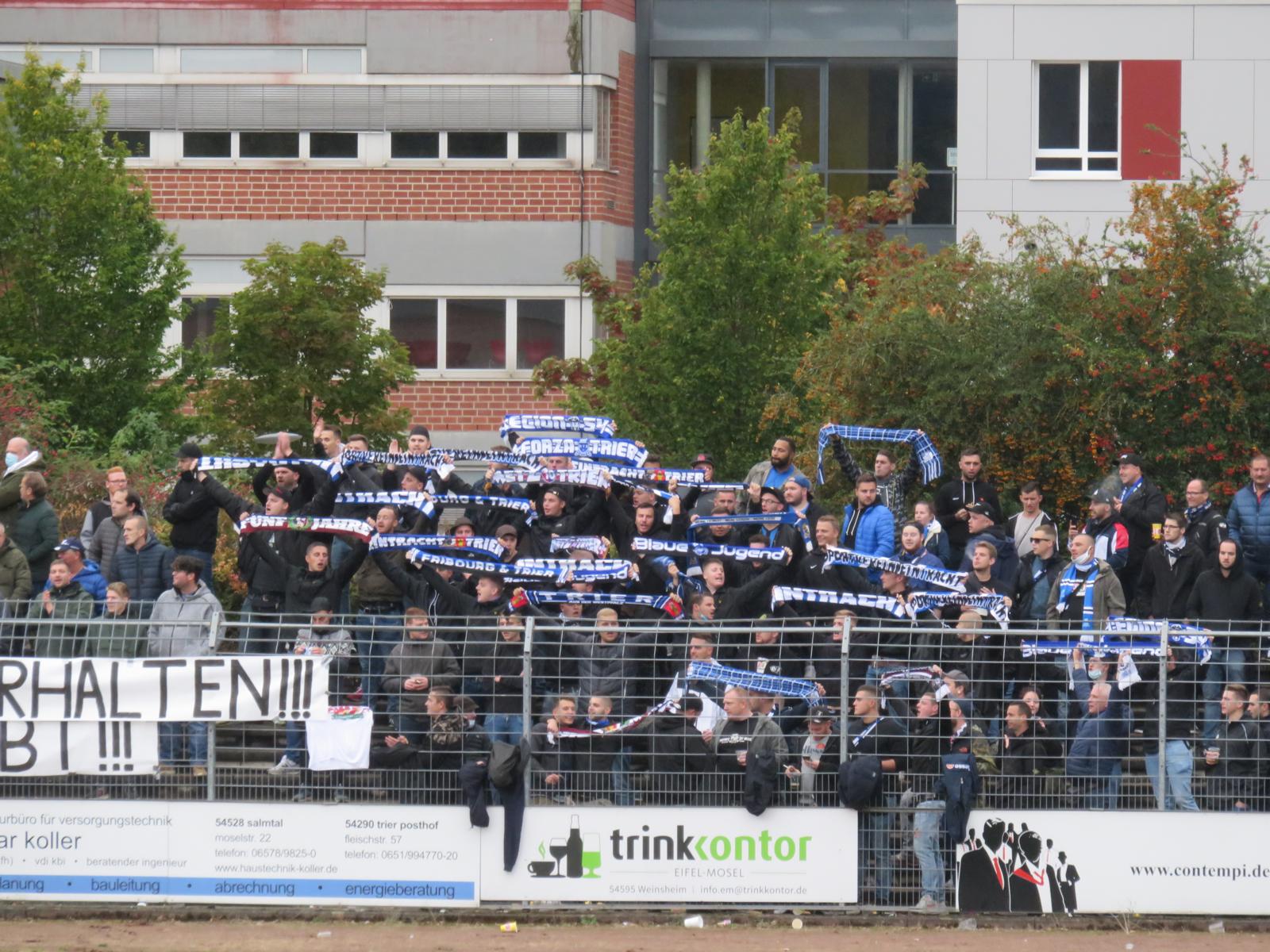 Die Trierer wurden von einigen Metzern begleitet. Es wurde keine Gruppenfahne aufgehangen und es gab keinen durchgehenden Support. Neben dem einen oder anderen Sprechchor gab es gerade in der zweiten Halbzeit immer mal wieder Sprechchöre gegen den kommenden Gegner Koblenz und die Salmrohrer. Warum man sich als Trier so an Salmrohr abarbeitet erschloss sich mir nicht. Gegen Ende wurde es dann immer wilder und es gab eine Pogoeinlage durch den ganzen Blick. Vor Ort sah ich das noch als unglücklich, aber menschlich an. Nachdem ich den Beitrag von Insane in der Blickfang Ultra gelesen hatte, schlug mein Verständnis eher in Unverständnis um. Weit war der Beitrag nicht mehr vom Coronaleugnertum entfernt. Viel Spaß auf diesem Weg Eintracht Trier!