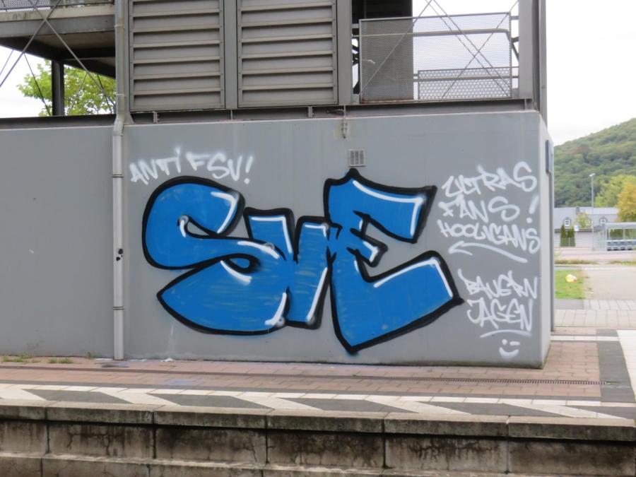 Nach dem Spiel liefen wir zügig zum Bahnhof. An ebenjenem schienen Trier und Metz früher am Tag angekommen zu sein. Jedenfalls war das gesamte Bahnhofsumfeld mit Bildern und Tags bedeckt und auch den einen oder anderen pyrotechnischen Gegenstand durfte man bewundern. Für uns ging es mit der Bahn nach Koblenz und gemeinsam mit Röller ließen wir entspannt den Tag ausklingen.