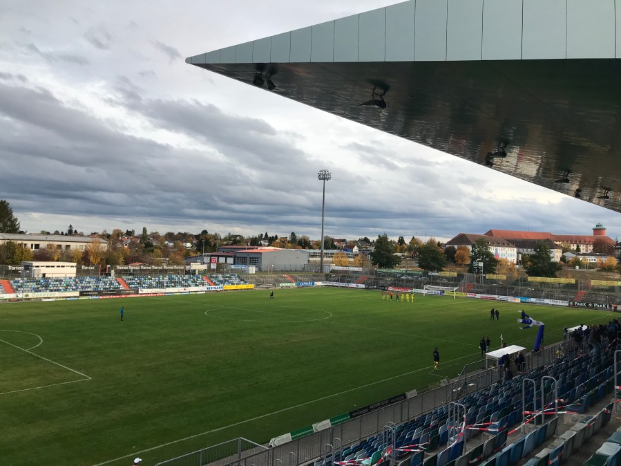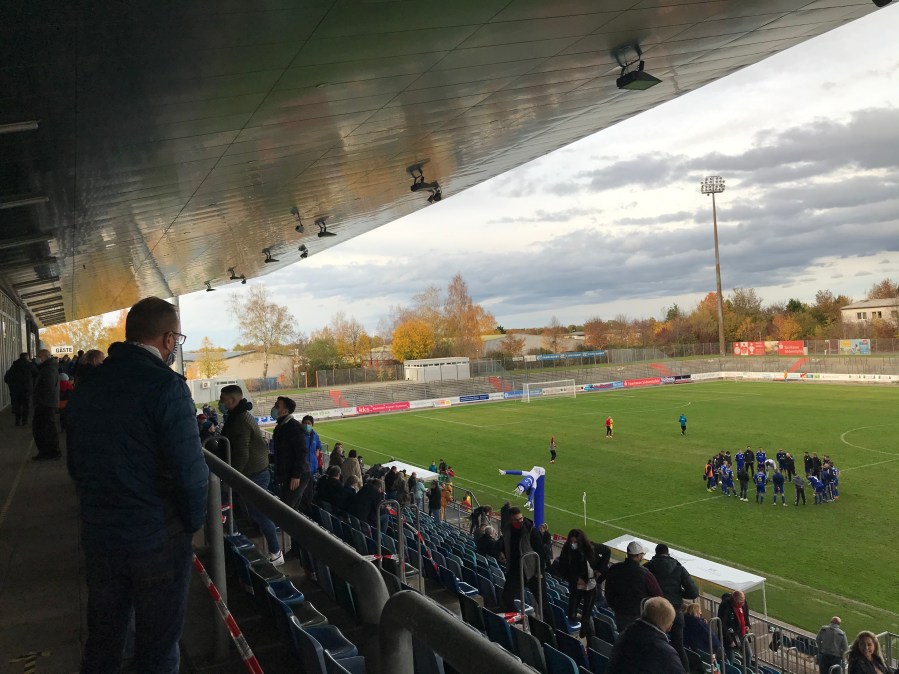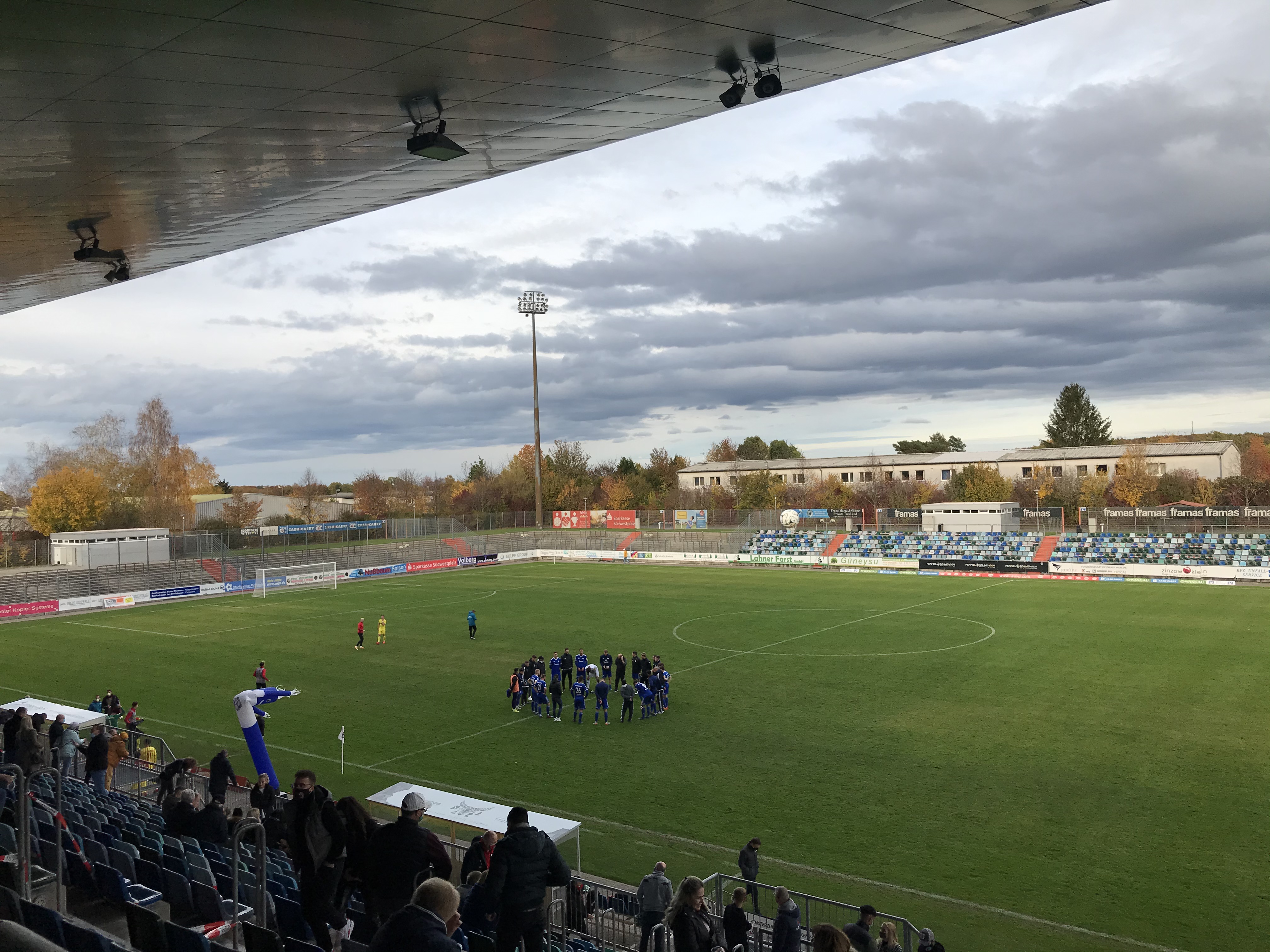 Reichlich spät bogen wir heute auf den Stadionparkplatz in Pirmasens ein. Im Laufschritt ging es zum Eingang und trotz der begrenzten Kapazität bekamen wir auf den letzten Drücker noch eine Karte. 15 Euro sind für die Regionalliga natürlich sehr happig. In Anbetracht der Tatsache, dass die Vereine momentan jedoch nicht so viele Karten verkaufen können und zusätzliche Kosten für die Hygienemaßnahmen haben, kann man diese Kröte ruhig mal schlucken. Mit dem Anpfiff betraten wir das Stadion und stärkten uns erst einmal am Imbisstand.