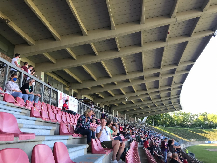 Ich hatte dann ein Ticket neben einem anderen Menschen, der ein Eintracht Braunschweig Logo an seinem Handy hatte. Das ist selbst im Normalzustand nicht optimal. Unter Corona-Bedingungen war das natürlich noch unglücklicher. Nach drei Platzwechseln hatte ich dann einen ungestörten Platz und saß kurz vor dem abgewählten Oberbürgermeister der Stadt Bonn.