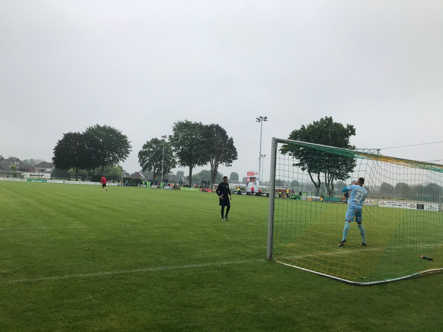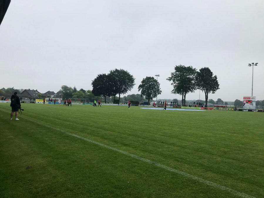 Ich wog die verschiedenen Optionen ab und die Entscheidung für Straelen fiel mir nicht schwer. Hier konnte man vorab Tickets kaufen und hatte so die Sicherheit wirklich in das Stadion zu kommen. Wir hatten an dem Wochenende ein Mietauto, sodass die Anreise in die Kleinstadt an der Deutsch-Niederländischen Grenze auch keine größere Herausforderung darstellte. Wir fuhren früh los und stoppten noch am bekannten portugiesischen Supermarkt in NRW und konnten so etwas Flair in den ansonsten grauen Tag bringen. Gegen 12:00 kamen wir dann in Straelen an und bogen in das Wohngebiet ein, indem sich auch das Stadion befand.