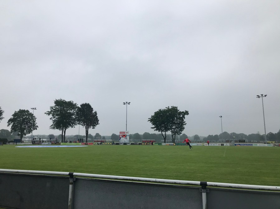 Dabei fuhren wir an einer Kneipe vorbei und sahen auch einige Straelener versammelt, die sogar Ultras Shirts trugen. Damit hatte ich überhaupt nicht gerechnet und war positiv überrascht. Wir ließen das Auto stehen und liefen noch in die wirklich schmucke Innenstadt des Ortes. Der niederländische Einfluss war unverkennbar und so konnte man sich architektonisch bereits hinter der Grenze wähnen. Nach einem kleinen Bummel drehten wir ab zum Stadion und ließen die Einlasskontrollen ohne Probleme hinter uns. Aufgrund der schlagartig geringen Inzidenz, war nicht einmal ein Corona-Test erforderlich.