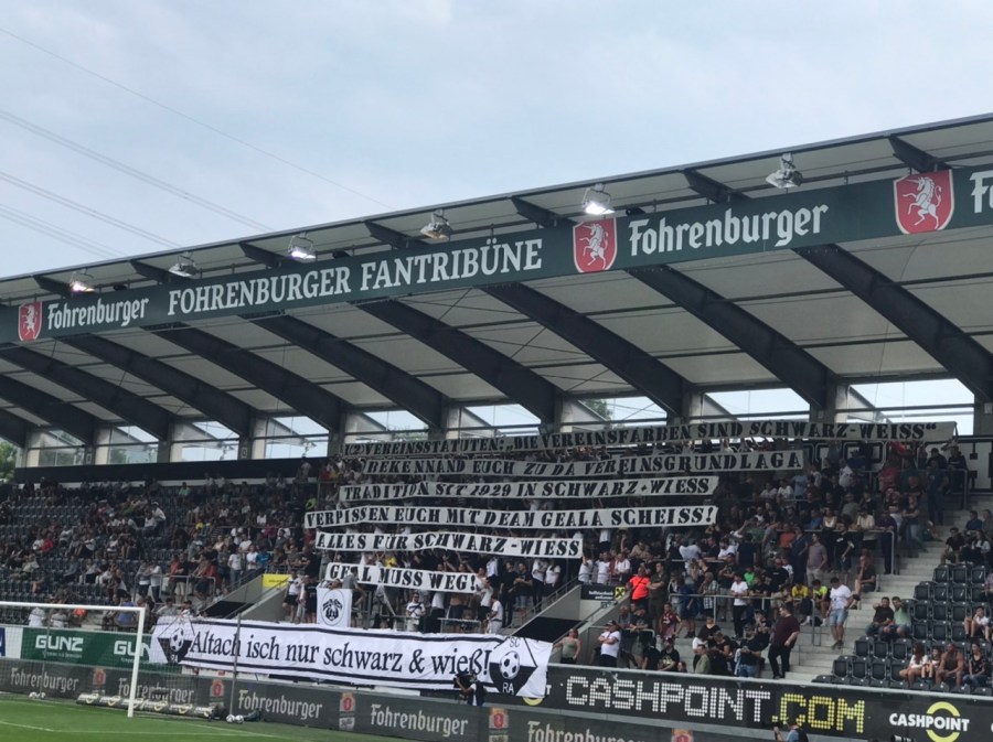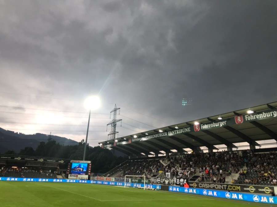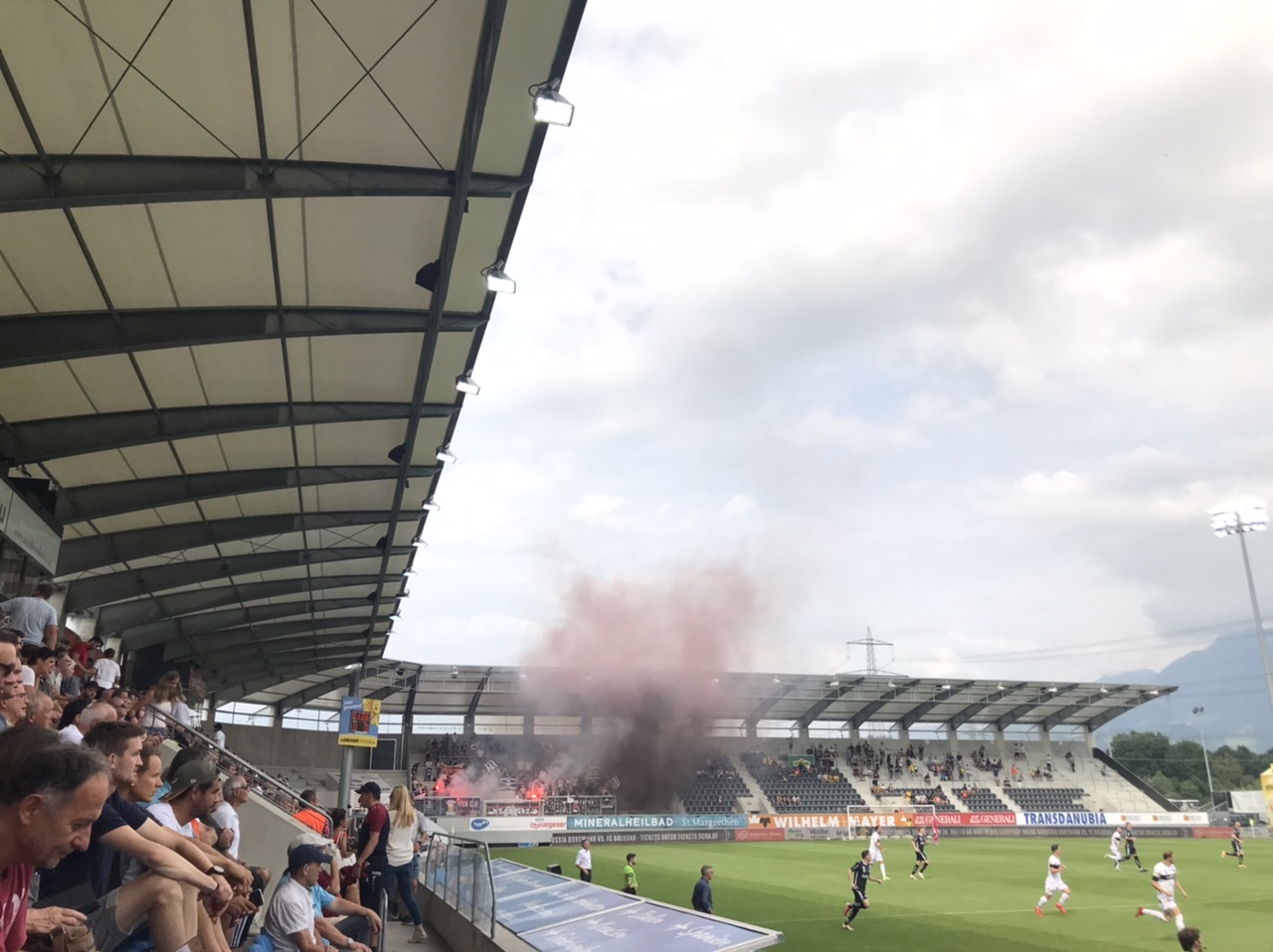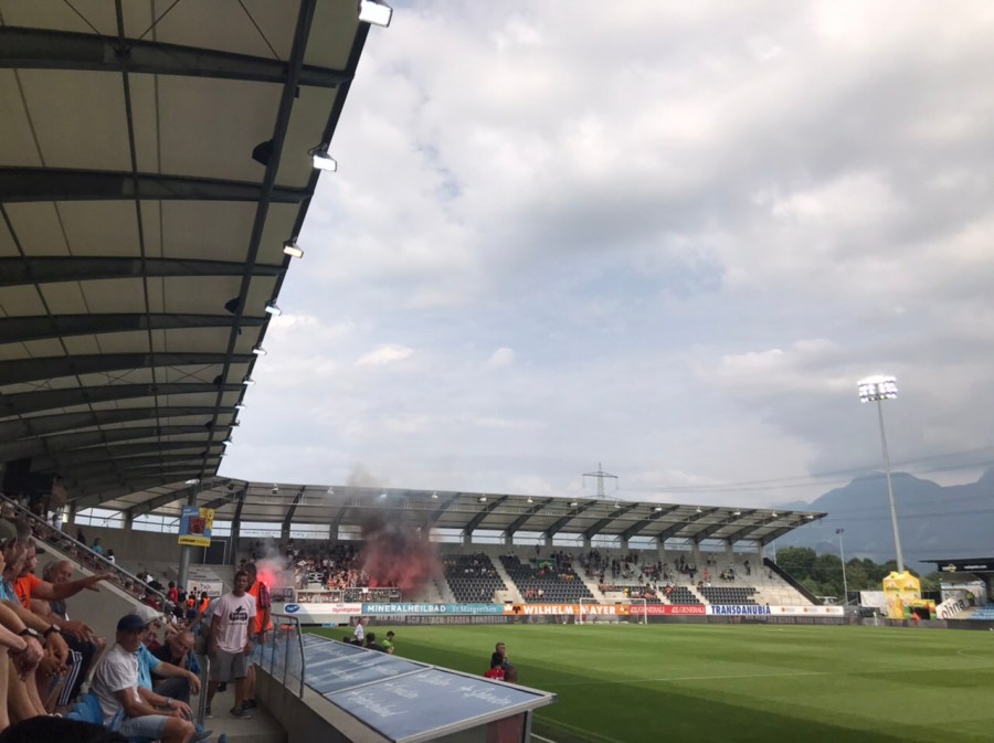 Während es in Deutschland auch in der neuen Saison allenfalls eine Perspektive auf Teilzulassungen von Zuschauern gibt, geht unser Nachbarland Österreich einen anderen Weg. Ab der Vorwoche gab es fast keine Corona-Beschränkungen mehr und auch im Fußballl galten kaum noch Restriktionen. Das bedeutete: Volle Kurven, reisende Gästefans und keine Masken mehr im Stadion. Schwer zu sagen, ob das der richtige Weg ist. Da sich bei mir abzeichnet, dass ich bei unserer Rückkehr ins Stadion nicht dabei sein werde, hatte ich große Lust zumindest noch einmal ein richtiges Fußballerlebnis zu haben. So lebte ich die zynische Doppelmoral: Ein Ticket auf der Haupttribüne, wo der nötige Abstand zu erwarten war und der beste Blick auf das Spektakel in beiden Kurven.