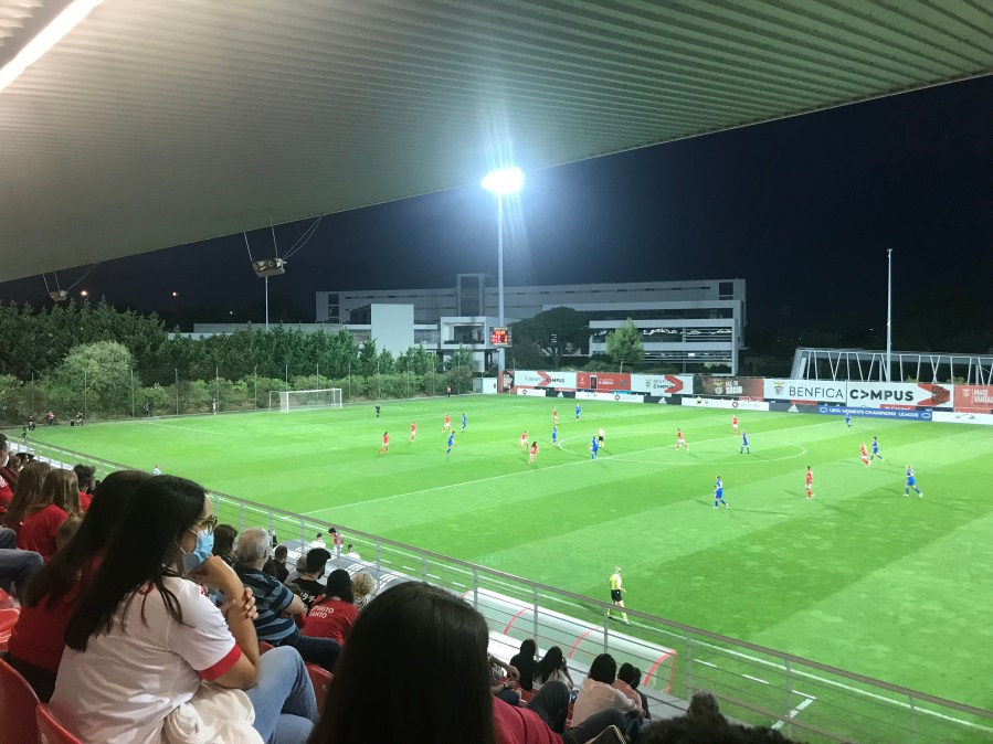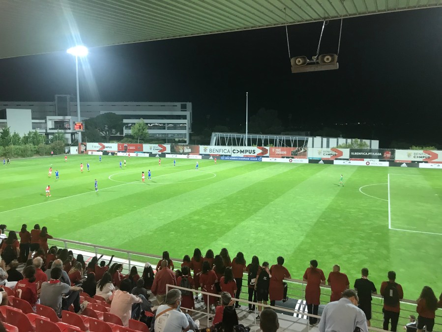 Auch an diesem schönen Donnerstagabend wurde Fußball im Lissabonner Umland geboten. Die Frauenmannschaft von Benfica spielte auf dem Campus in Seixal gegen Twente Enschede. Der Gewinner dieser Partie würde in die Gruppenphase der Championsleague einziehen. Das war bisher noch keiner portugiesischen Frauenmannschaft gelungen. Das Hinspiel in Holland war mit einem 1:1 ausgegangen, sodass mit einem spannenden Spiel zu rechnen war.