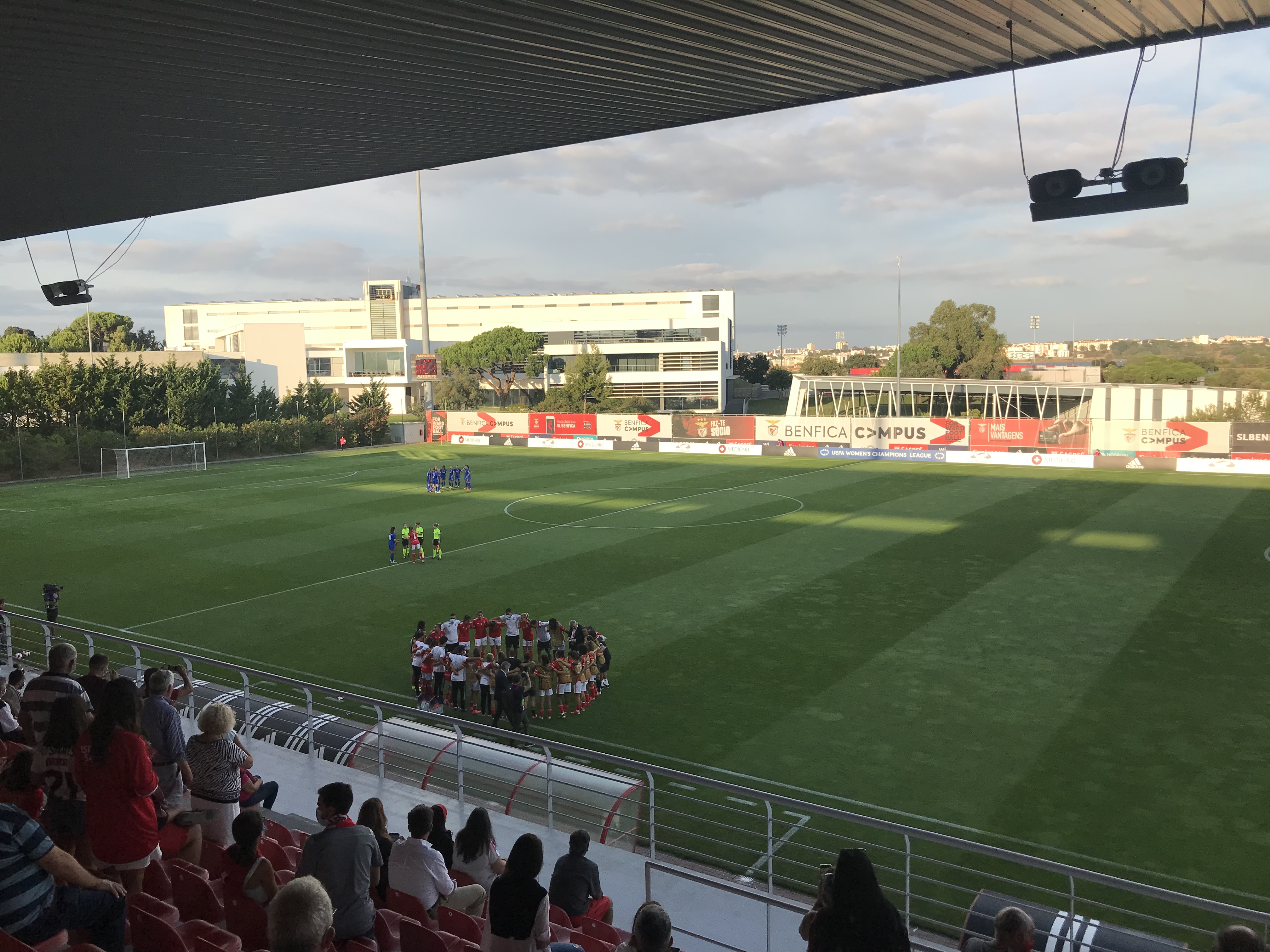 Auch an diesem schönen Donnerstagabend wurde Fußball im Lissabonner Umland geboten. Die Frauenmannschaft von Benfica spielte auf dem Campus in Seixal gegen Twente Enschede. Der Gewinner dieser Partie würde in die Gruppenphase der Championsleague einziehen. Das war bisher noch keiner portugiesischen Frauenmannschaft gelungen. Das Hinspiel in Holland war mit einem 1:1 ausgegangen, sodass mit einem spannenden Spiel zu rechnen war.
