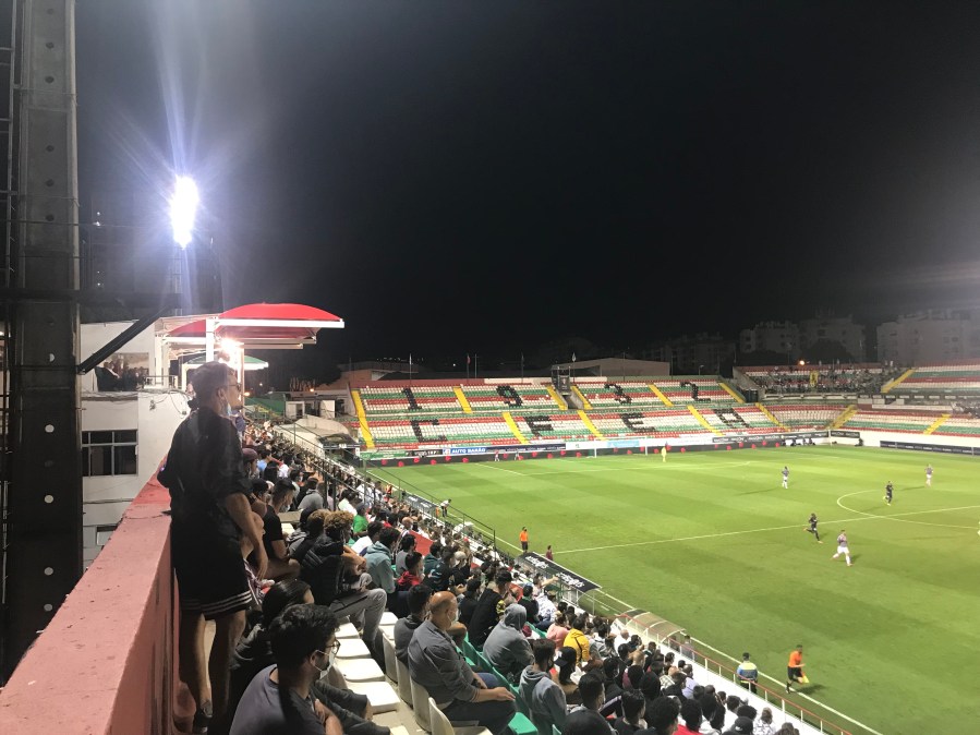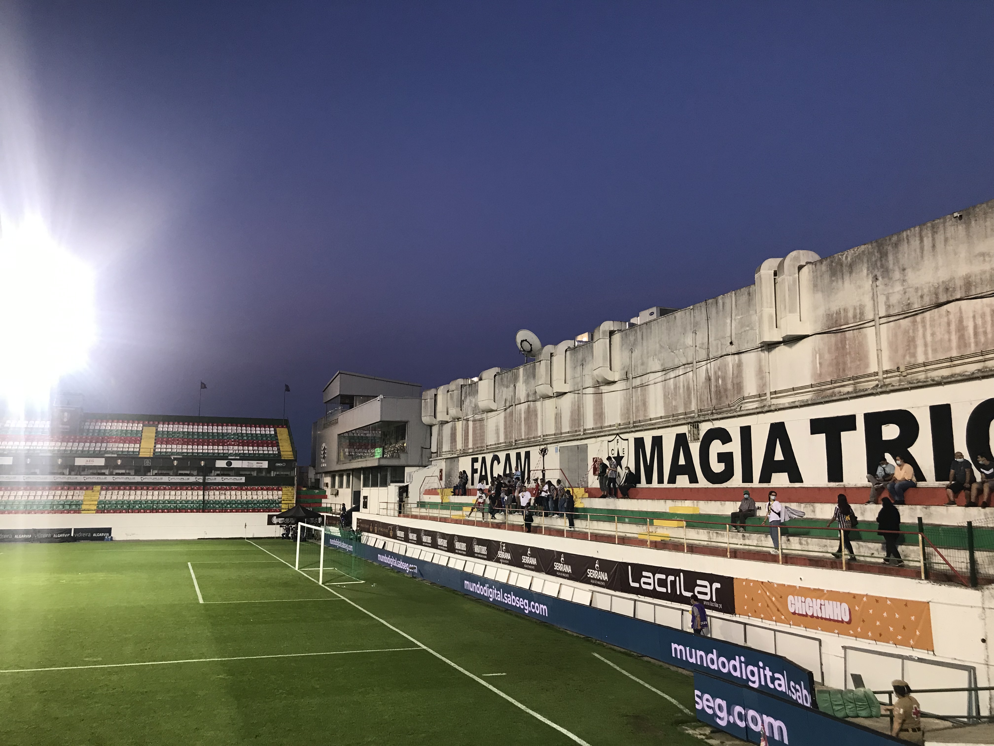 Estrela Amadora hingegen eroberte mein Herz im Sturm. Der Verein ist wirklich durch die Scheiße gegangen. 2011 gingen hier durch eine Insolvenz die Lichter aus. Einige Fans gründeten einen Nachfolgerverein, um die Tradition am Leben zu erhalten. Vor zwei Jahren gab es dann eine Fusion mit einem Verein aus Sintra und man tritt wieder unter dem alten Namen an. Für mich ein Beispiel dafür, dass Fusionen nicht immer automatisch zu kritisieren sind. Estrela Amadora ist zurück im Profifußball und das ist gut so. Einige Fragen rund um die Insolvenz sind jedoch immer noch nicht geklärt. Das Insolvenzverfahren ist immer noch anhängig und großer Streitpunkt ist die Nutzung des Stadions. Für Portugiesischsprachige empfehle ich diesen kurzen Beitrag auf Youtube: https://www.youtube.com/watch?v=cgsOoxu_dPw