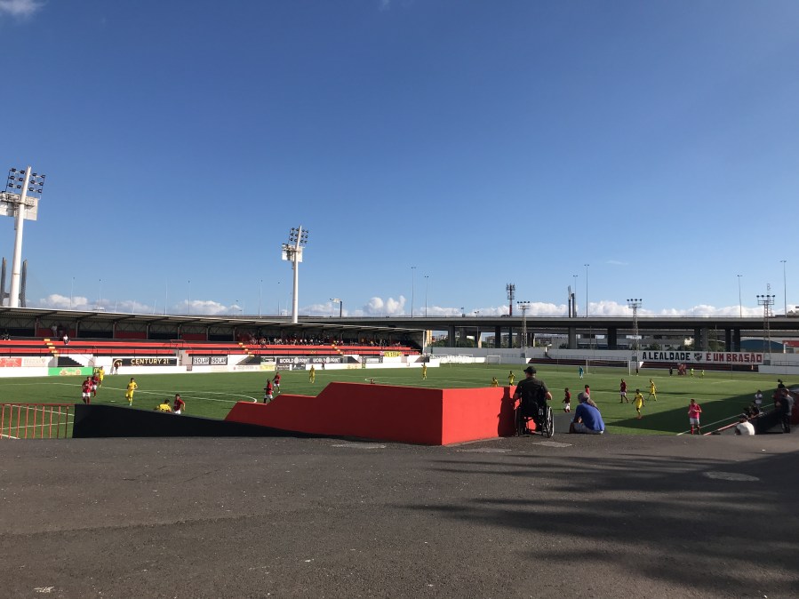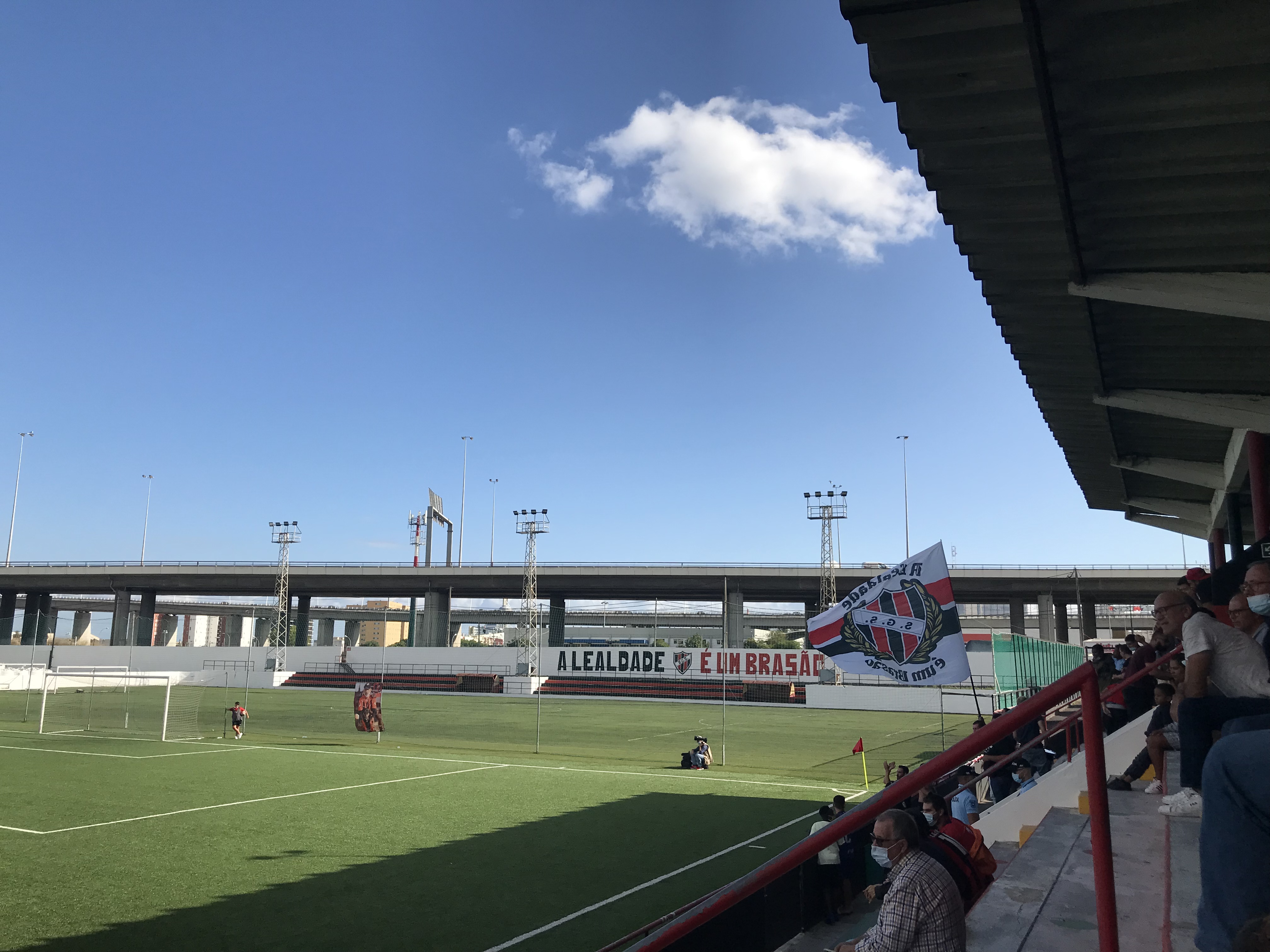 Am Samstag gab es zahlreiche Partien der zweiten Pokalrunde im Lissaboner Großraum zur Auswahl. Lange überlegen musste ich nicht. Nach dem Auftritt in Belém hatte ich die Jungs von Saca in mein Herz geschlossen und hatte große Lust auch ein Heimspiel zu besuchen. Gegen Mittag verließ ich die Wohnung und entschied mich auf dem Hinweg den Bus nach Sacavanense zu nehmen. So eine Busfahrt entlang der gesamten Linie verschafft einem immer Begegnungen mit interessanten Personen und so waren die 45 Minuten Fahrt anthropologisch sehr wertvoll. Sacavanense liegt unmittelbar hinter der Lissaboner Stadtgrenze. Man unterquert einmal die Brücke Vasco da Gama und ist praktisch sofort da.