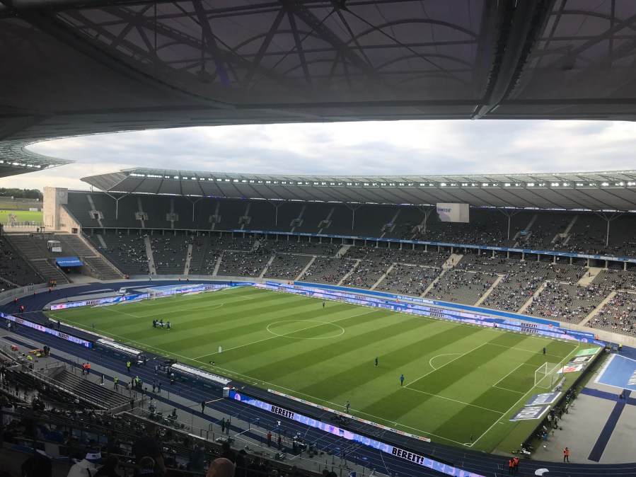 Der heutige Samstag brachte den dringend benötigten Temperaturanstieg und sogar den ersehnten Sonnenschein. Wir starteten entspannt mit einem Frühstück in den Tag und fuhren dann mit der S-Bahn in den Berliner Westen. Ein Hauch von Normalität und Erinnerung lag für mich an diesem Tag in der Luft. Mit den Stationen Wochenmarkt, Wettbüro und Mittagslokal kam wirklich so etwas wie Nostalgie auf. Wir wurden noch vom Südberliner Ebert verstärkt und machten uns dann auf den Weg in Richtung Olympiastadion.