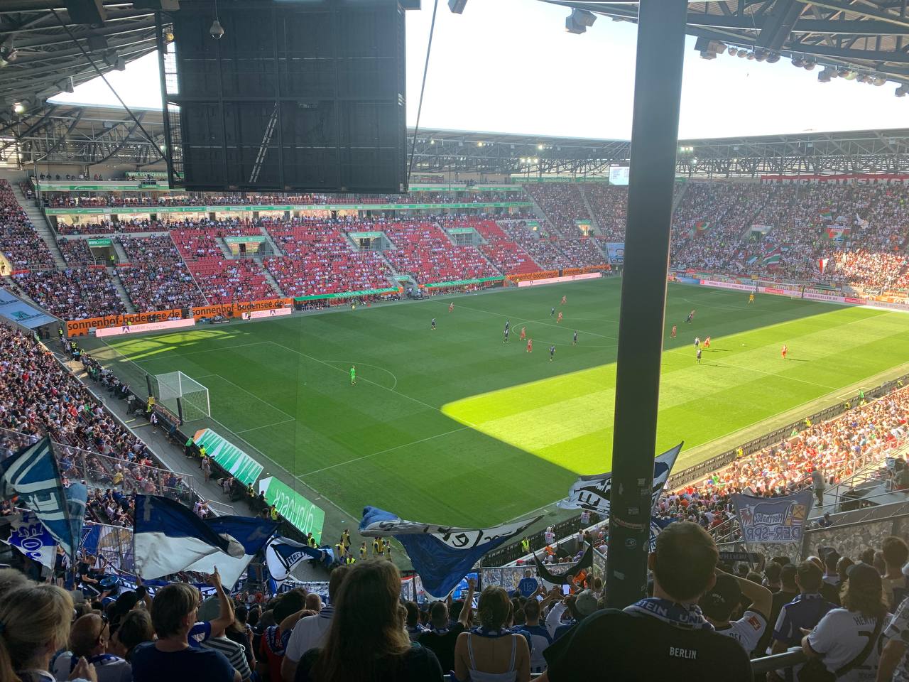 An diesem 02.09.2022 war es nun endlich so weit. Ich war gerade knappe 48 Stunden im Land und durch den gänzlich unterschiedlichen Umgang mit der Corona-Pandemie war der Reverse-Kulturschock noch ziemlich ausgeprägt. Groß war bei mir die Angst, dass die doch erhebliche Angst vor der Infektion und die damit verbundenen möglichen Schwierigkeiten für die Rückreise nach China dazu führen würden, dass ich den Stadionaufenthalt nicht so unbeschwert gestalten könnte, wie ich es mir wünschte. Gleichzeitig war ich wild entschlossen mich dem Risiko auszusetzen, um diese Momente erleben zu können. Gemeinsam mit dem Klabauterkeaper im Auto näherten wir uns zur Mittagszeit Augsburg. Der geplante Stopp in der Unterkunft wurde aufgrund von Zeitmangel kurzfristig gestrichen und so steuerte ich direkt das Stadion an.