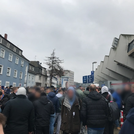 Ich lief dann wieder etwas zurück, umkurvte die Polizeikette und machte mich auf den Weg in den Heimbereich. 5 Minuten später hatte ich dann auch meine ursprüngliche Eintrittskarte im Heimbereich verkauft. Die Polizeikette wieder umkurvt und wenig später war ich im Sitzplatzbereich des Gästeblocks. Da meine Leute jedoch eher im Stehplatzblock waren, gab es noch eine letzte Hürde zu überspringen. Entschlossen auf den Ordner zugelaufen und gesagt, dass ich gerade noch die Choreoschals verkauft hätte und schwups war das Tor auf und ich war im Gästeblock. Es sollte die einzige Erfolgsgeschichte des Tages werden.
