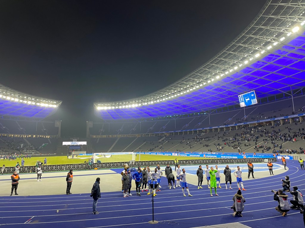 Hatte man nach dem desaströsen Bochum Spiel noch eine Reaktion erwartet, wurde man bereits in der dritten Spielminute bitter enttäuscht. Wolfsburg ging früh in Führung und Hertha machte es den Gästen auch in der Folge nicht wirklich schwer. Nach einem dusseligen Handspiel von Lukebakio stellte Arnold per Elfmeter auf 0:2. Nach dem 0:3 in der 34. Minute war jede Hoffnung begraben und in der Ostkurve weitestgehend die Luft raus. In der zweiten Halbzeit kam Hertha etwas besser ins Spiel und konnte zumindest die Zweikämpfe besser annehmen. Aus keiner der Halbchancen wurde jedoch etwas gemacht und auf der Gegenseite war Wolfsburg eiskalt, sodass es am Ende mit einer saftigen 0:5 Klatsche nach Hause ging.