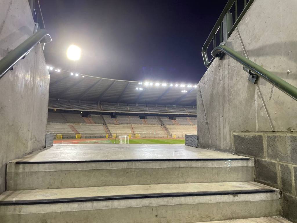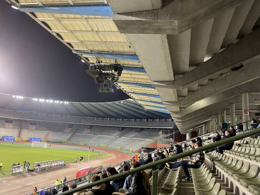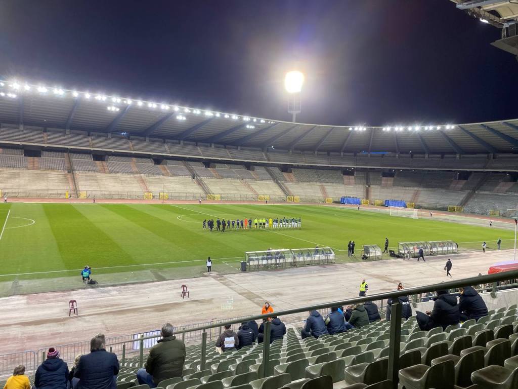 Das Stadion wurde in den 90er Jahren komplett renoviert und umgebaut und war 1996 Austragungsort des Europapokalfinals. Auch bei der EM 2000 war das Stadion Austragungsort. Das Stadion sieht schon wieder relativ baufällig aus und so wurde sich eigentlich auf eine erneute Renovierung geeinigt. Diese sollte im Jahr 2022 eigentlich abgeschlossen sein- bisher hat sie aber noch nicht begonnen. Für Stadionliebhaber eine gute Sache, denn die Kiste ist wirklich eine Augenweide. Auf den Sitzschalen gab es eine zentimeterdicke Staubschicht und der Klabauterkeaper konnte sogar hinter dem Stadiondach das Brüsseler Wahrzeichen das Atomium entdecken. Das Stadion hat noch eine Laufbahn und somit gibt es auf beiden Seiten auch richtige Kurven. Aufgrund des geringen Zuschaueraufkommens war heute nur eine Tribüne geöffnet.